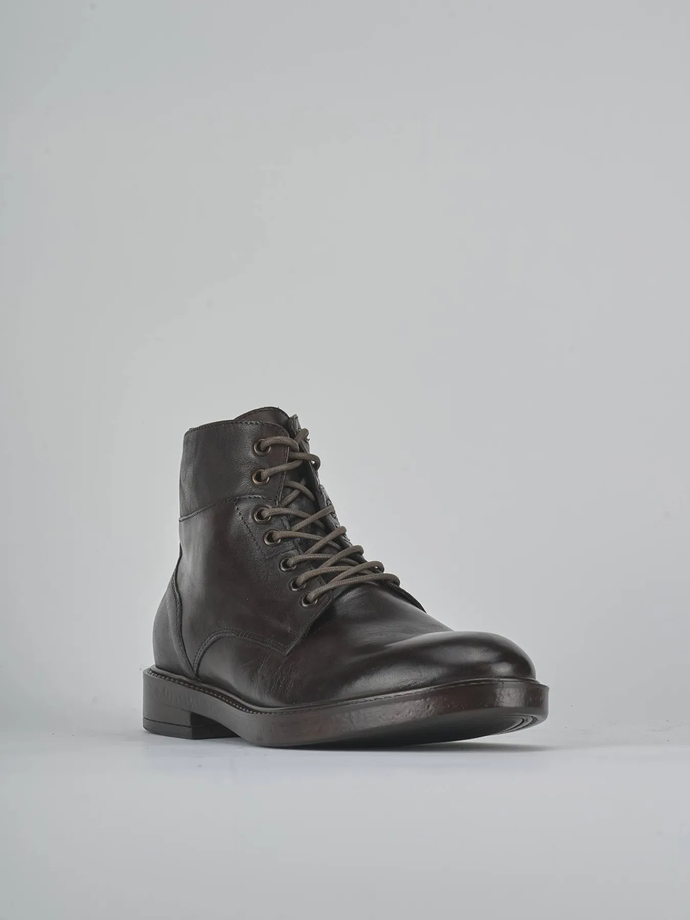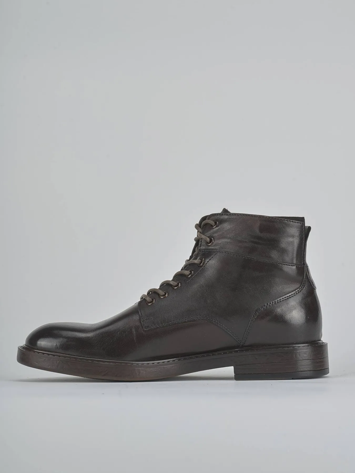 Le cuciture visibili e i dettagli come i lacci e gli occhielli in metallo conferiscono un look robusto e sofisticato.