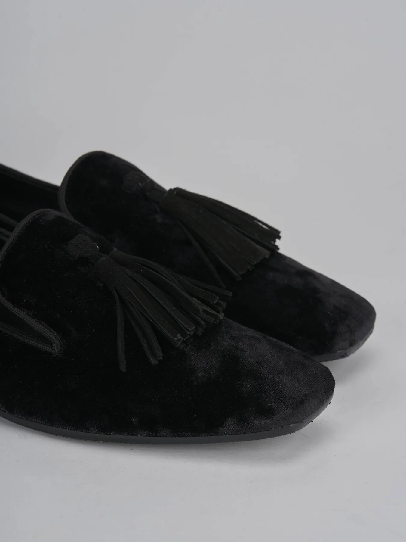ballerina tacco 2 cm fondo in leggera gomma e soletto interno in vera pelle. tomaia in morbida pelle foderata in velluto, punta leggermente squadrata e nappine. perfetto per un look casual ma chic.