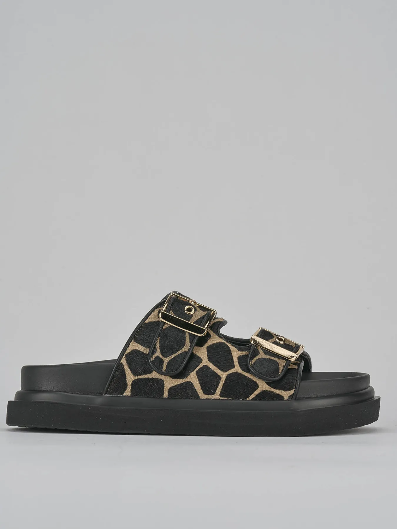 Realizzate in pelle multicolor, presentano una tomaia in morbida pelle foderata cavallino con un elegante motivo giraffa.