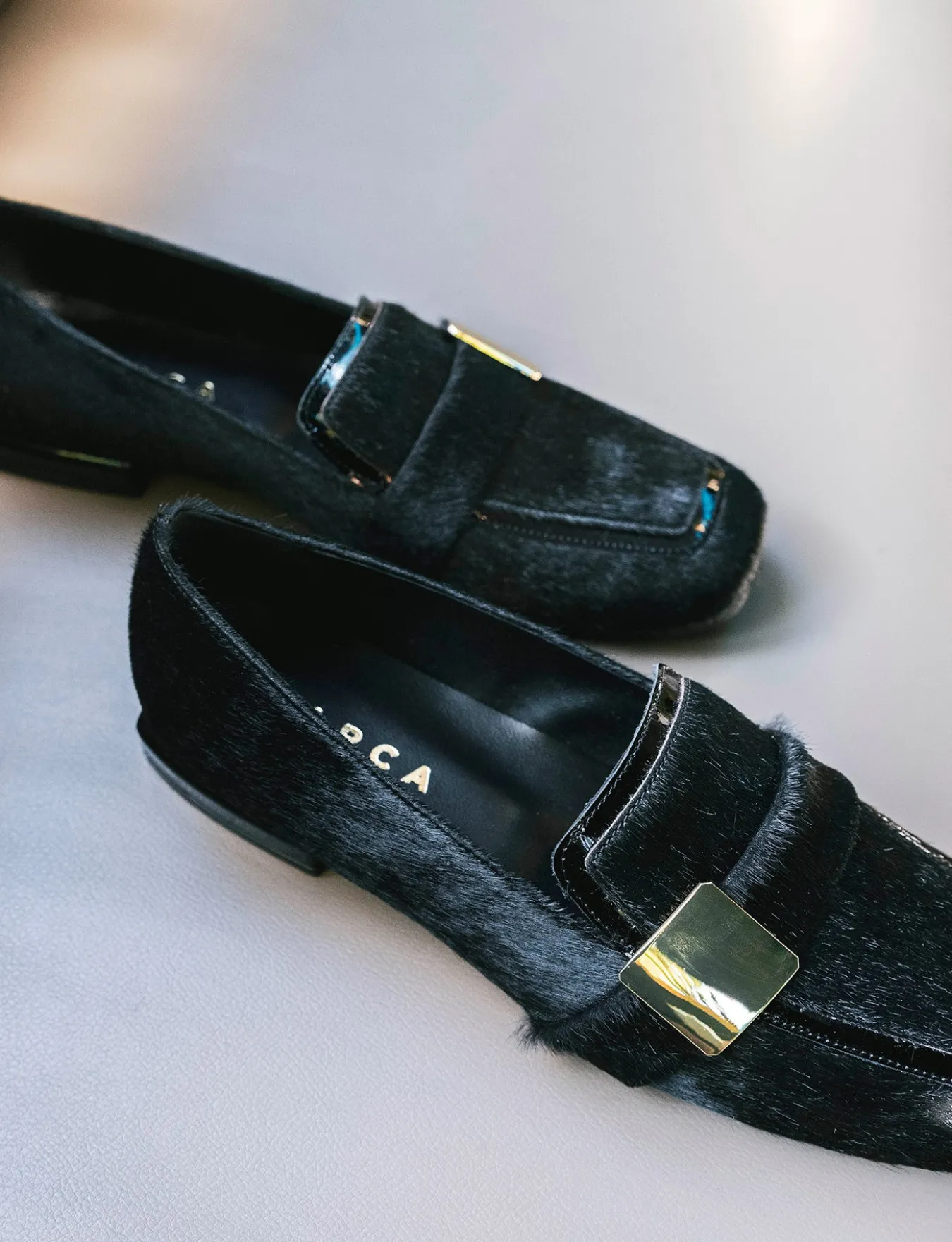 La tomaia è realizzata in morbida pelle ricoperta in cavallino, offrendo un tocco di lusso e raffinatezza.