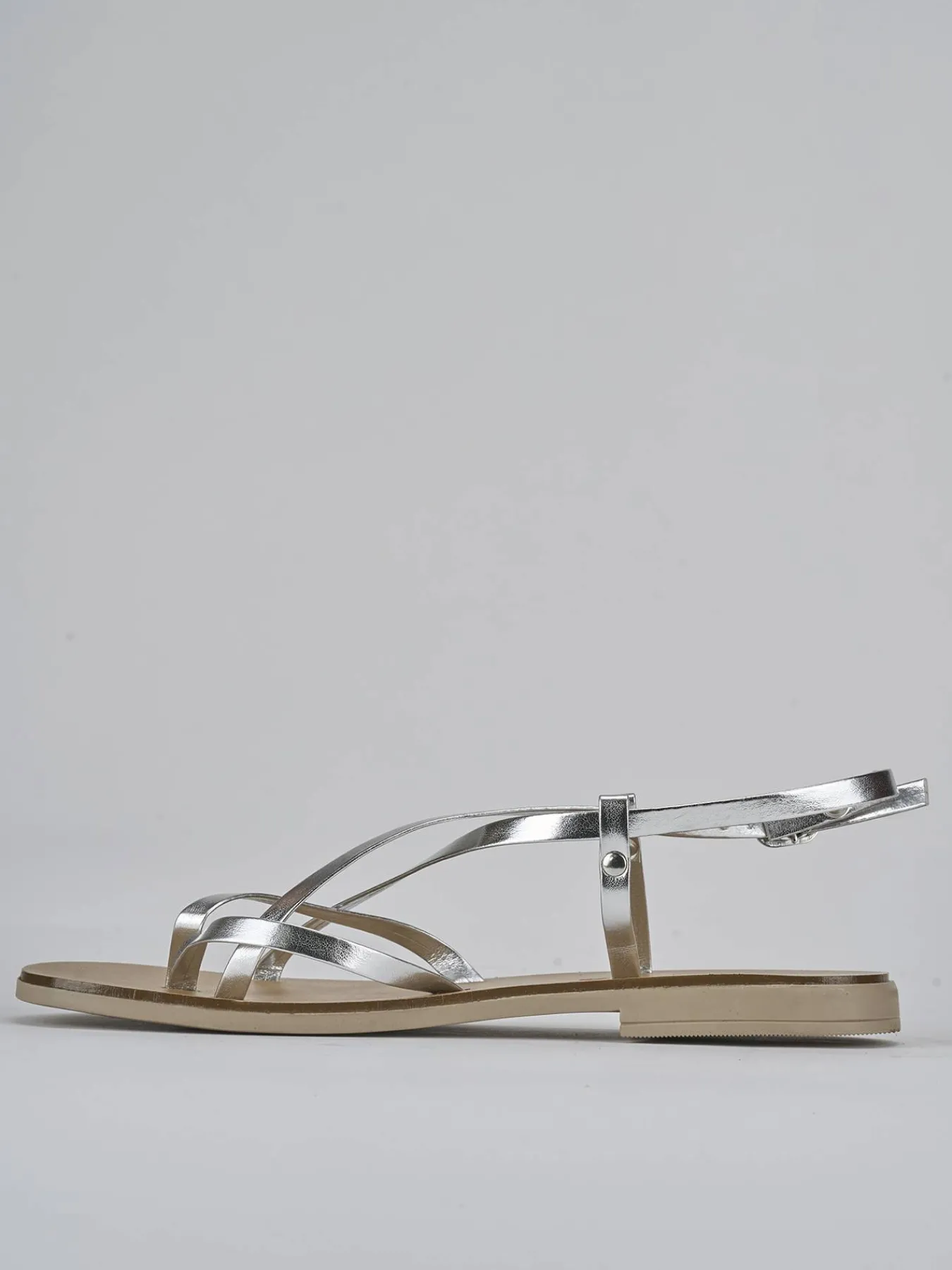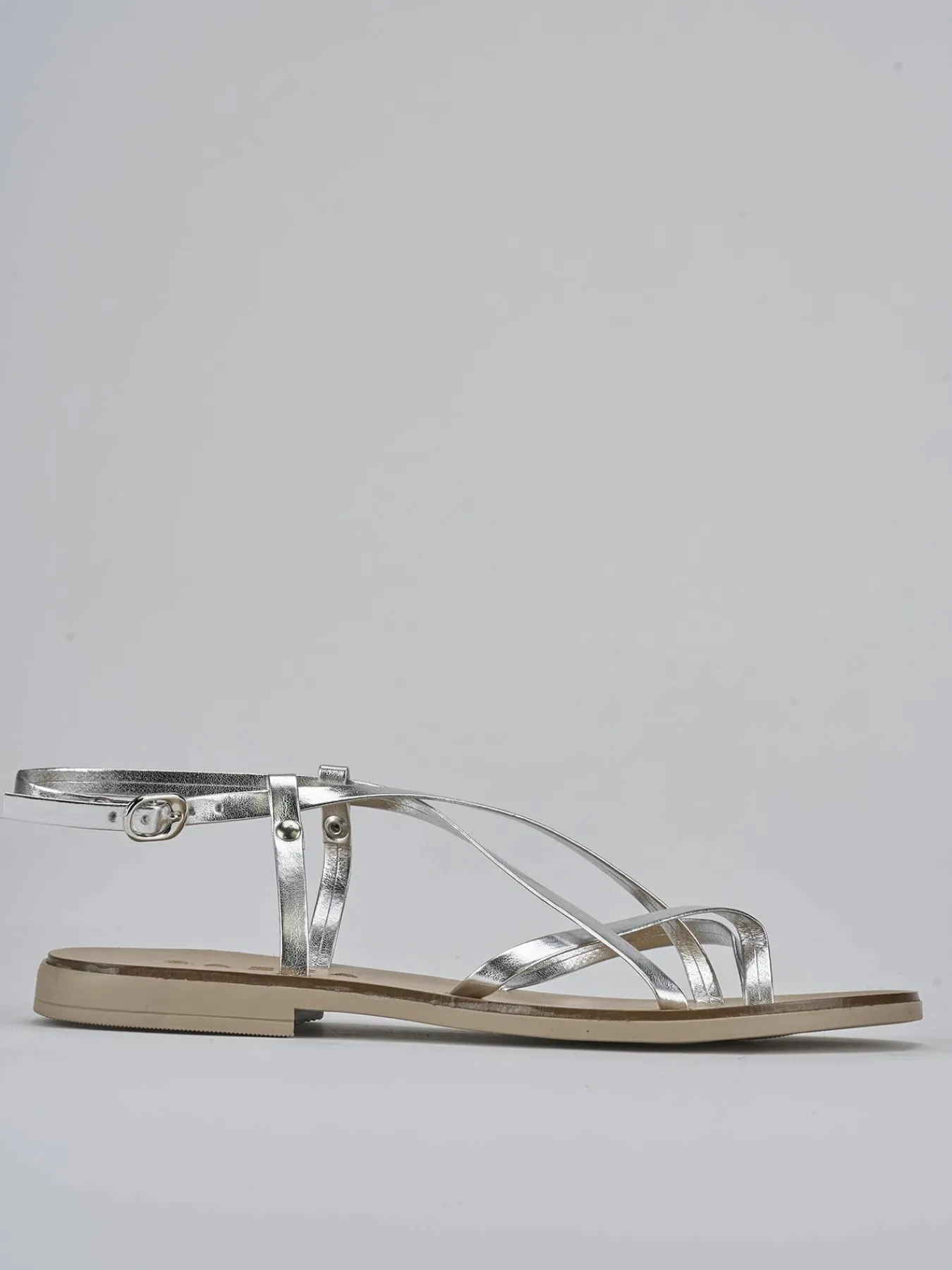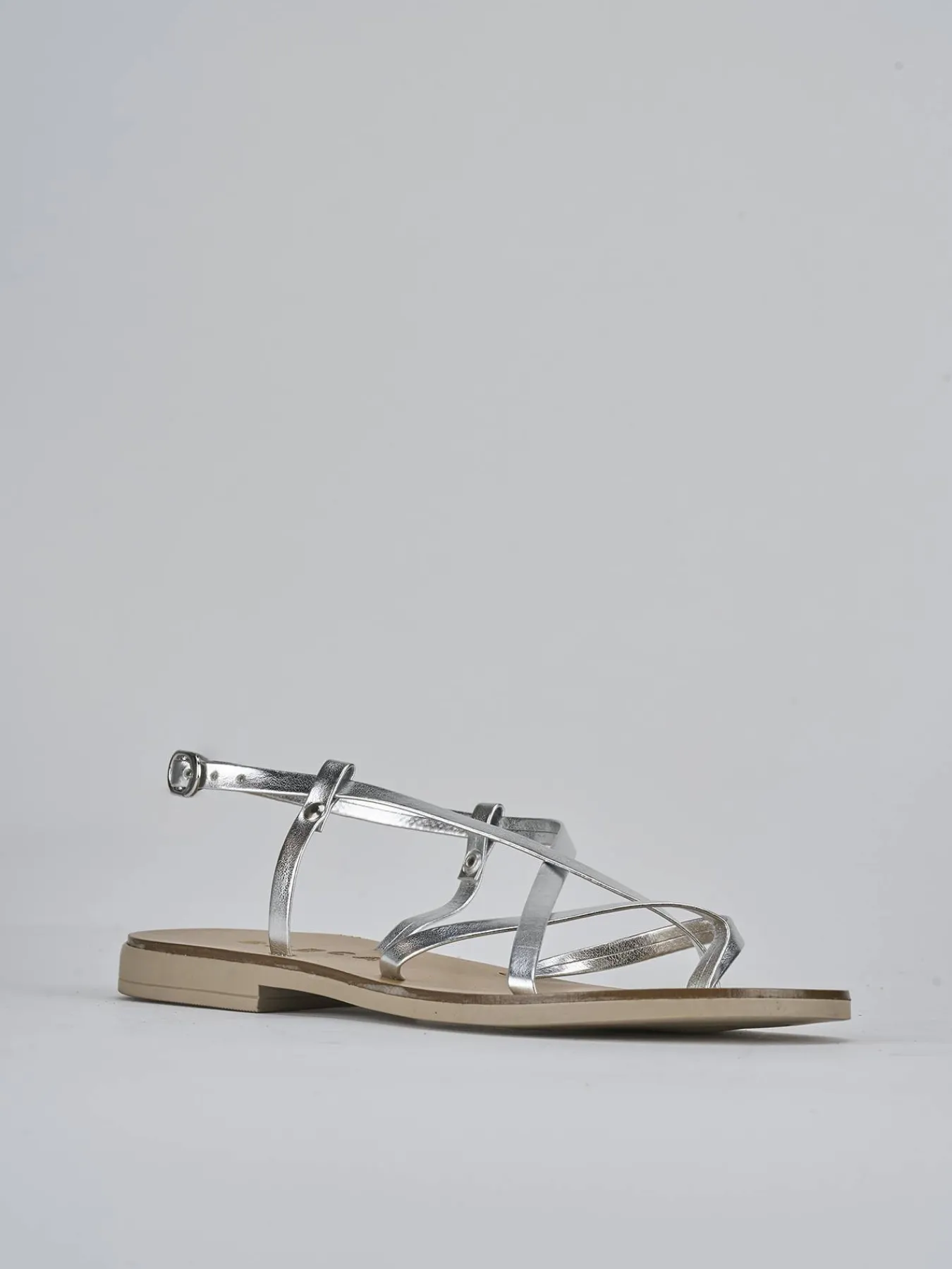 Realizzati in pelle laminata color argento, questi sandali sono una scelta versatile e raffinata per ogni occasione.