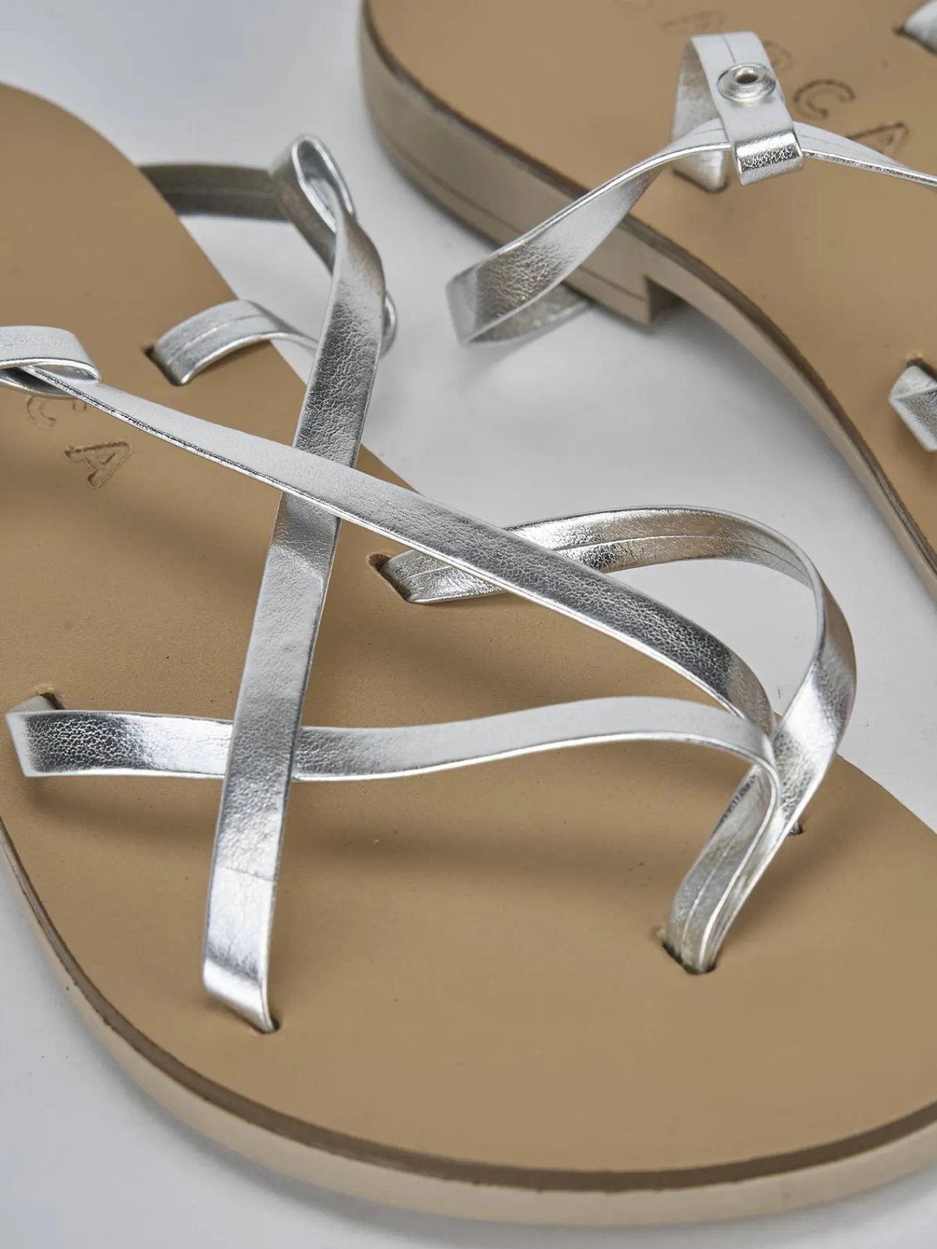 La tomaia è caratterizzata da fascette sottili incrociate e un design infradito, che si adattano perfettamente alla forma del piede, offrendo un tocco di raffinatezza.
