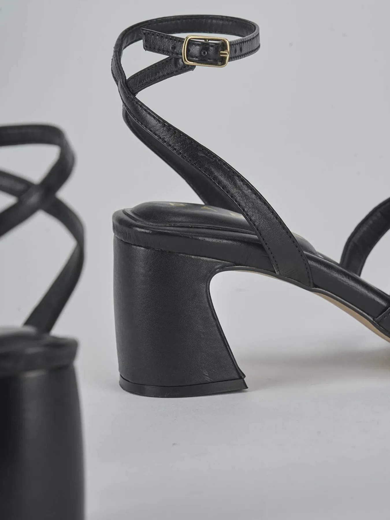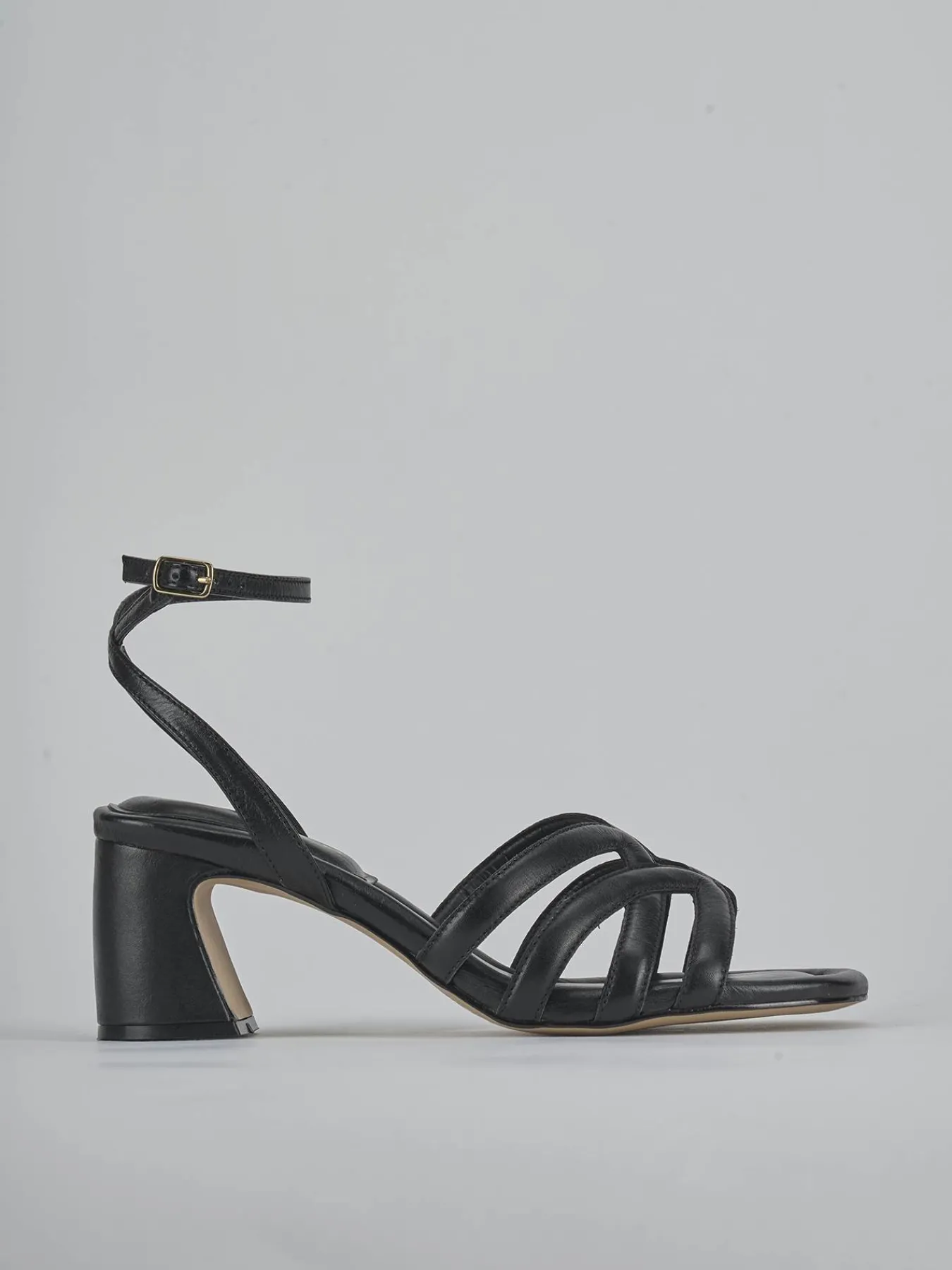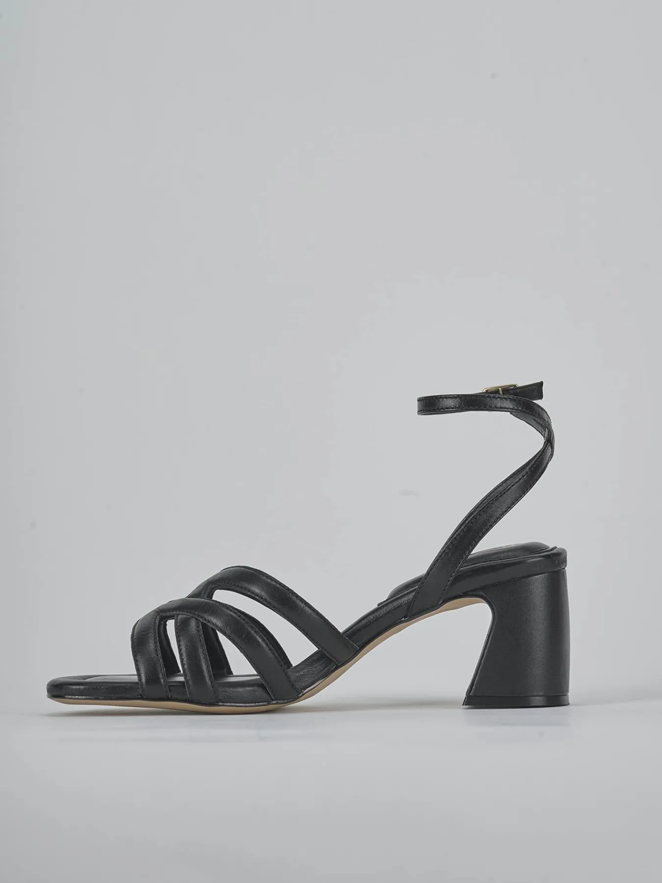 Sandalo tacco 6 cm fondo in leggerissima gomma e soletto interno in vera pelle. Tomaia in morbida pelle, punta leggermente squadrata, fascette a ‘C’ rovesciate, imbottito, cinturino con fibbia regolabile e tacco stabile a banana. Dal design eterno per un look chic.