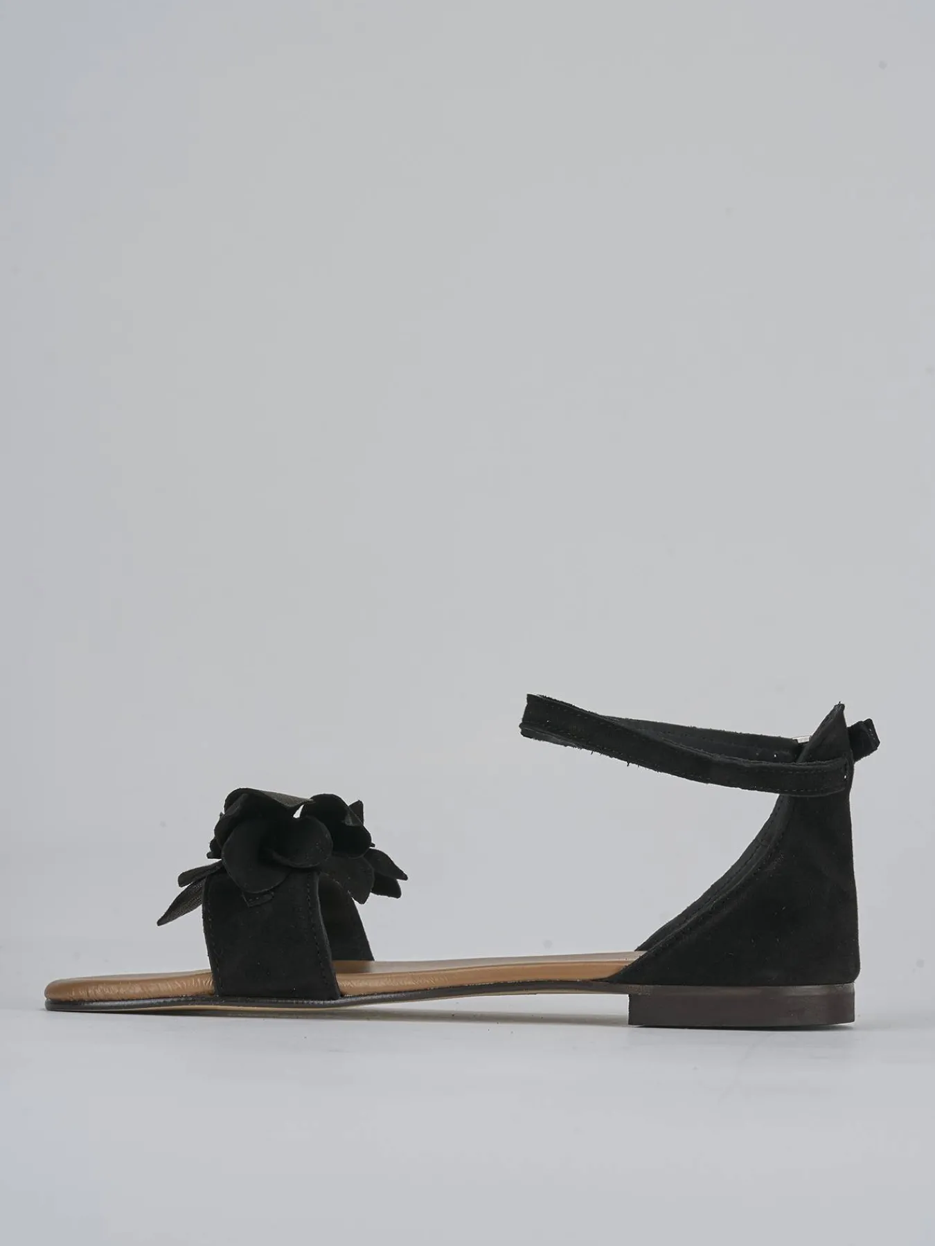 La tomaia è realizzata in morbido camoscio nero, con una punta affusolata e una fascia unica che valorizza il piede.