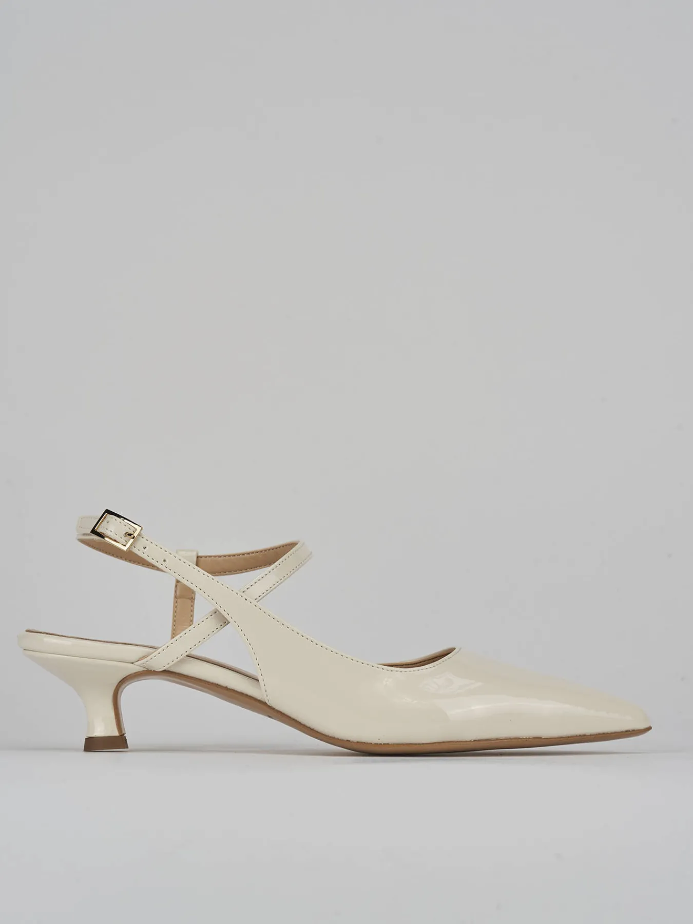 Slingback tacco 4 cm fondo in leggera gomma e soletto interno in vera pelle. tomaia in morbida pelle effetto verniciato, punta sfilata, scollo squadrato, cinturino incrociato con fibbia regolabile e tacco rocchetto per un look che ti farà notare.
