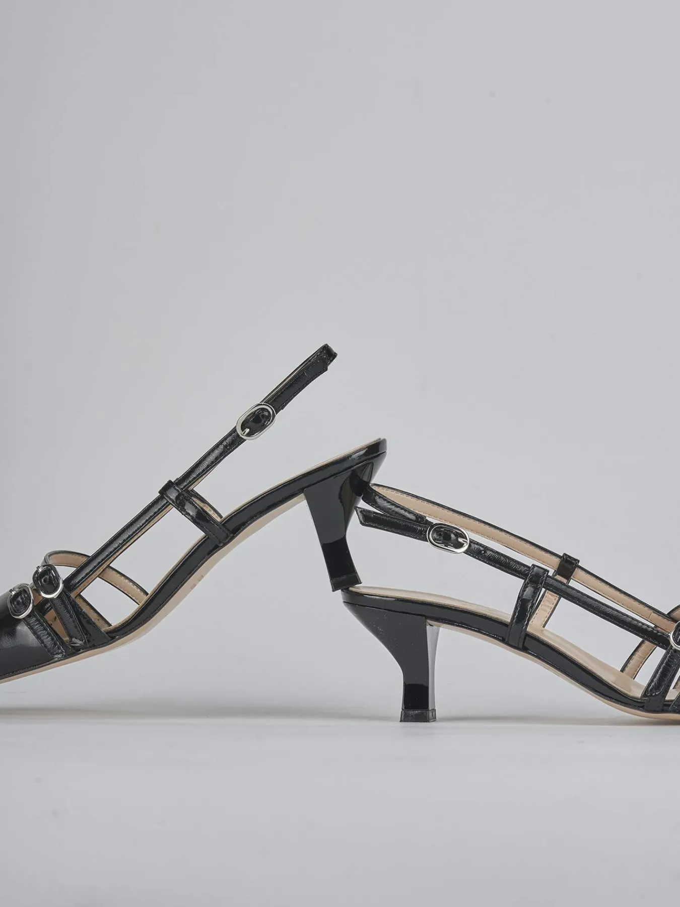 Slingback decolte’ tacco 6 cm fondo in cuoio e soletto interno in vera pelle. Tomaia in morbida pelle effetto verniciato, punta sfilata, puntale, due cinturini con fibbia regolabile sul collo del piede e cinturino sul tallone e comodo tacco rocchetto. Perfetto sia con dei jeans sia con un vestito.
