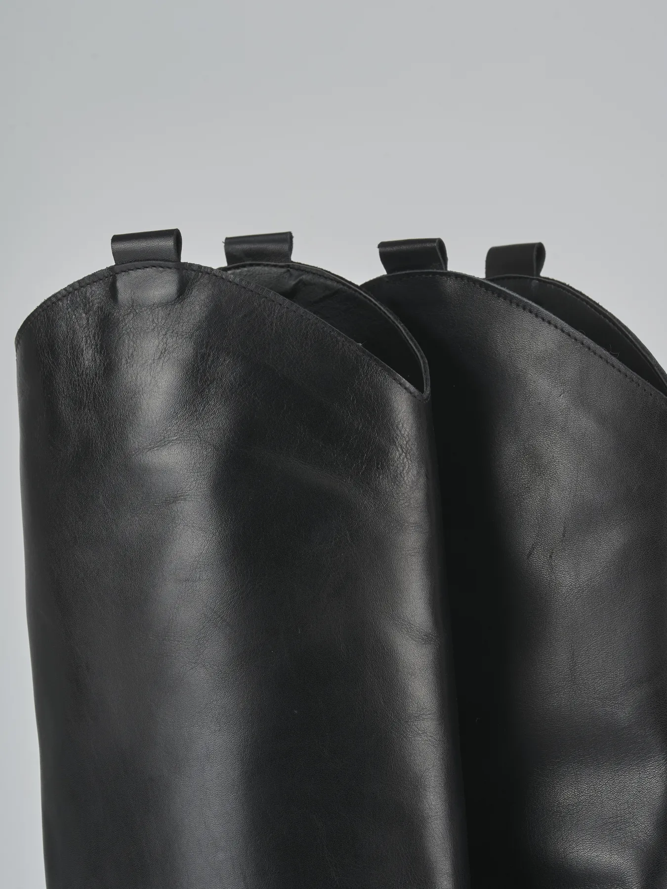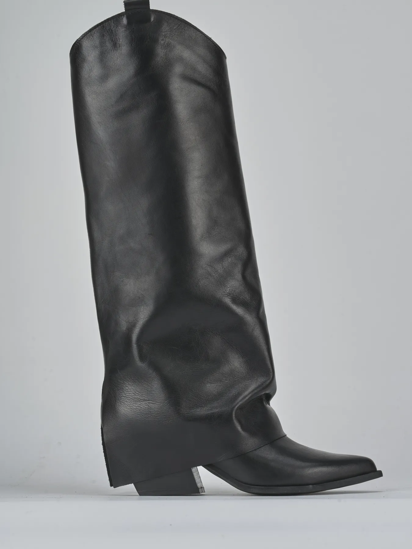 Il morbido risvolto si estende fino al tallone e l’altezza del gambale arriva appena sopra il ginocchio per un look audace.