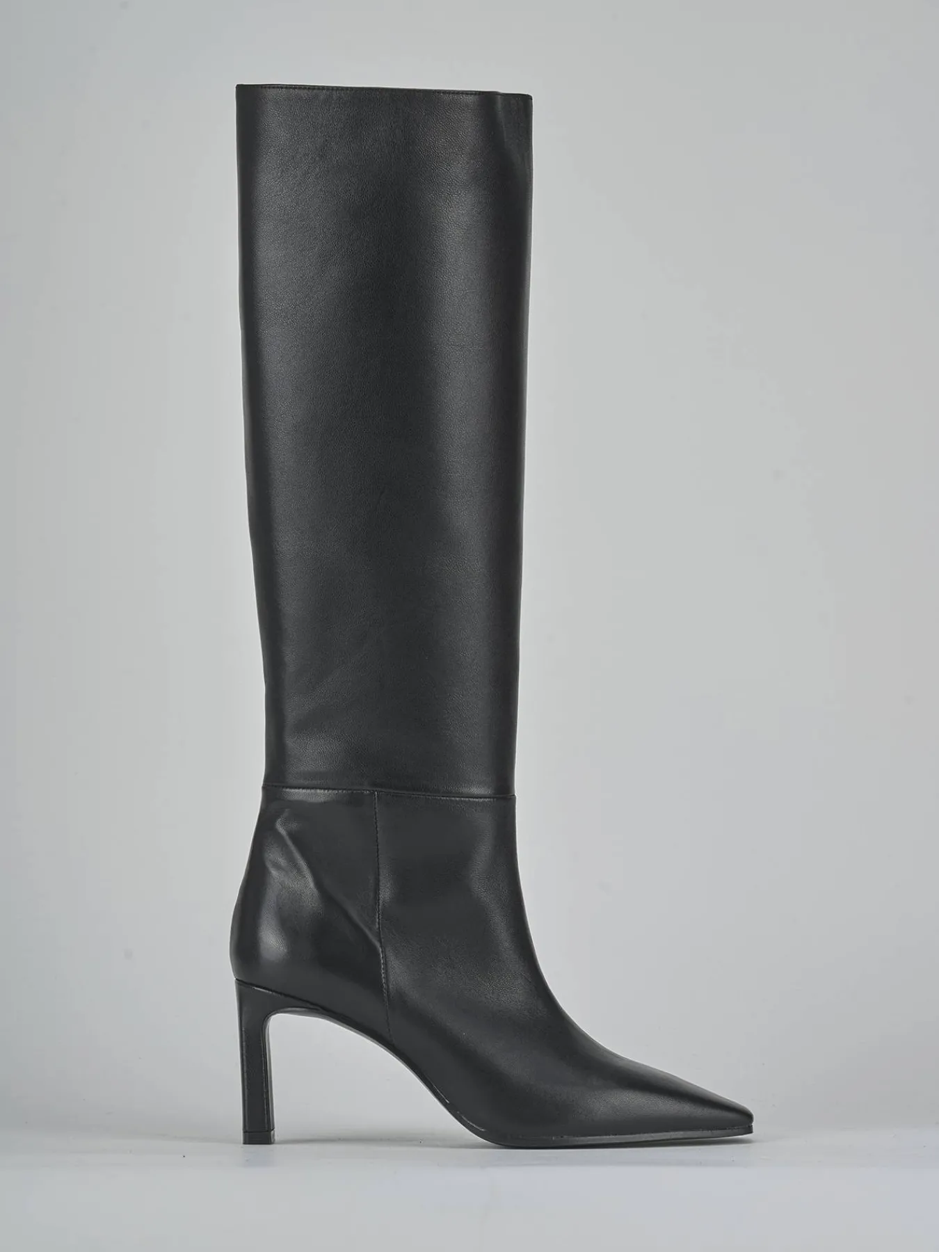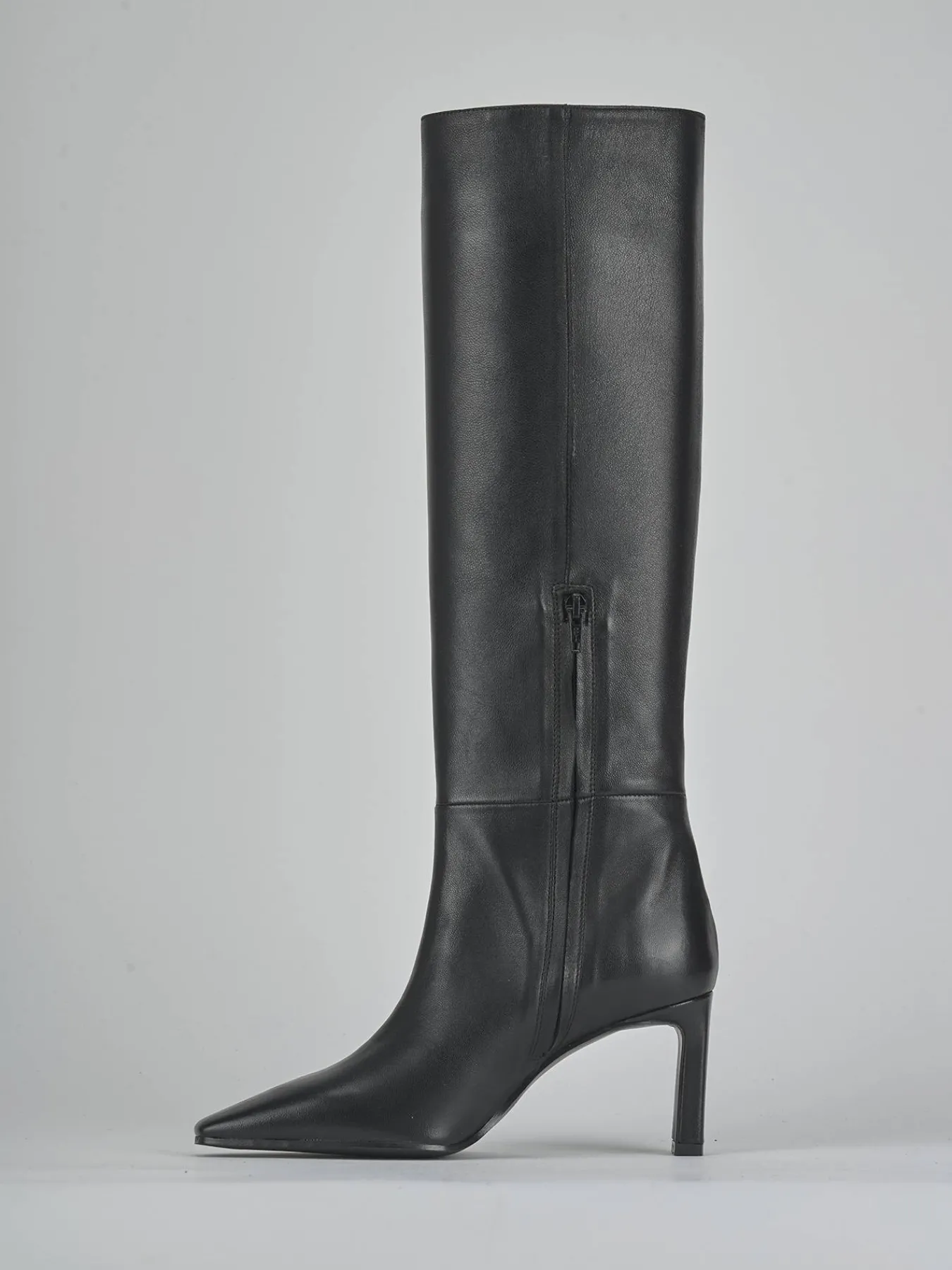 La punta sfilata aggiunge un tocco di classe, mentre le cuciture visibili sul gambale tubolare, che arriva appena sotto il ginocchio, donano un aspetto raffinato.