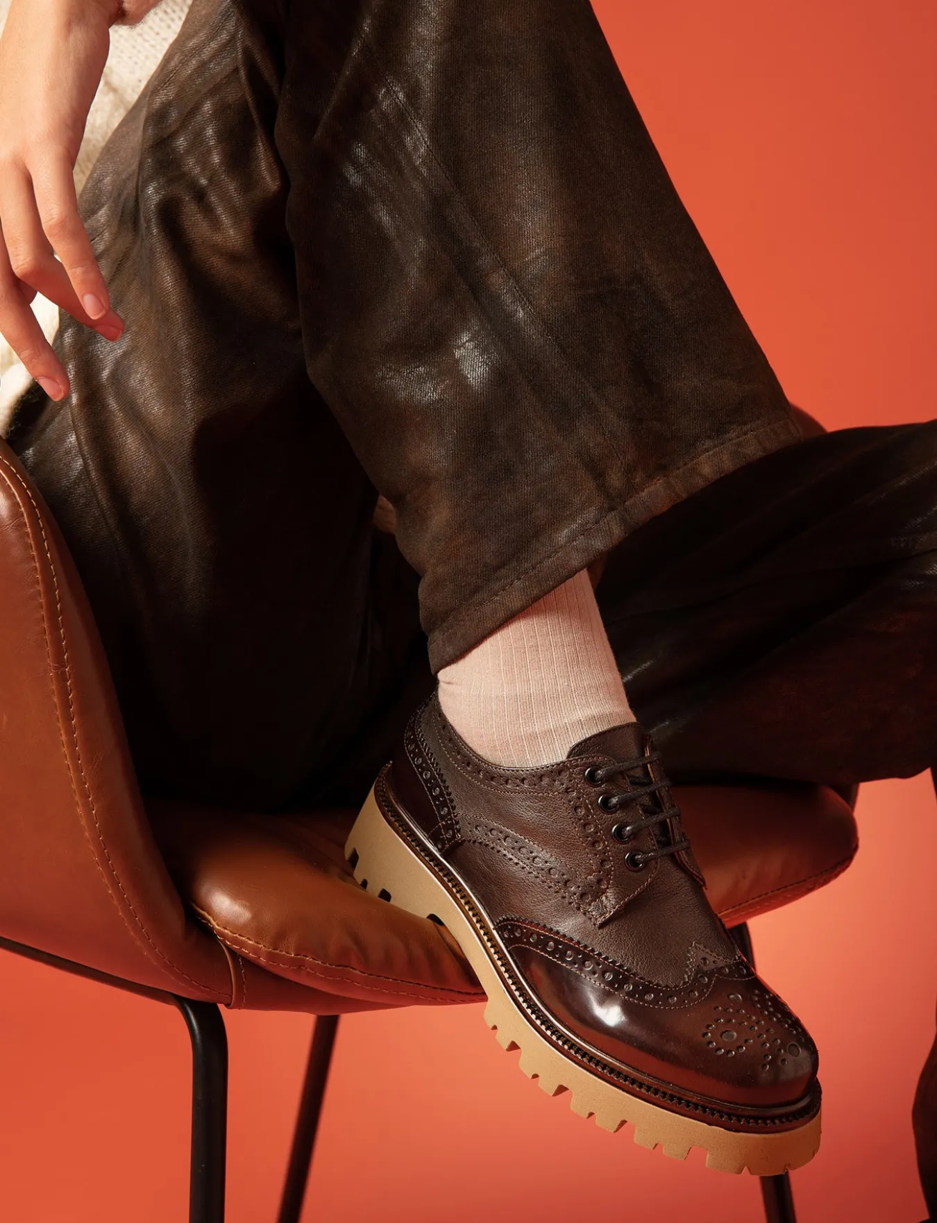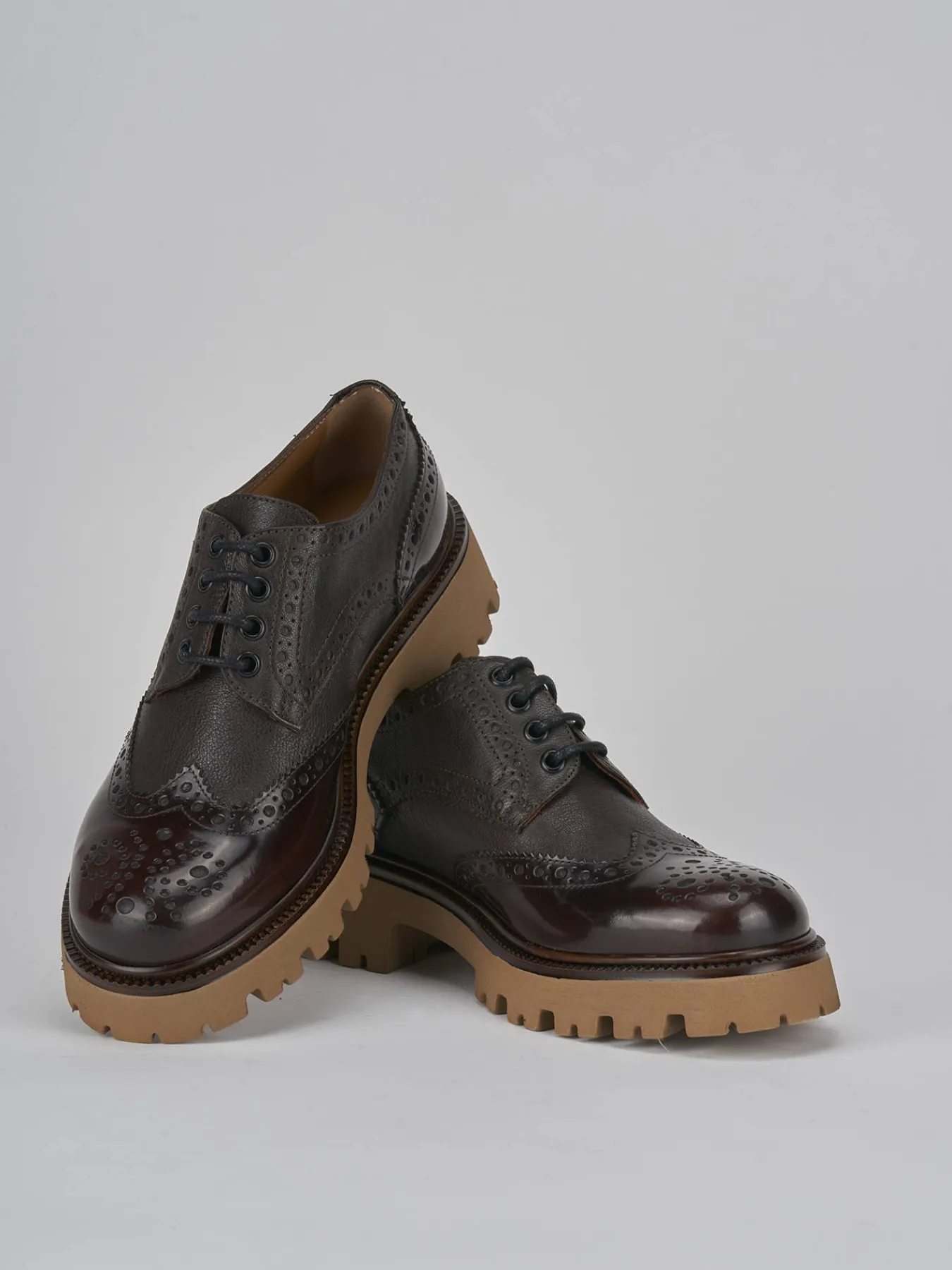 Stringata tacco 2 cm fondo in gomma e soletto interno in vera pelle. Tomaia in pelle di ottima qualità con pregiata lavorazione inglese e combinazione di due pellami differenti, rock raffinato e particolare fondo seghettato extra light per un look chic.