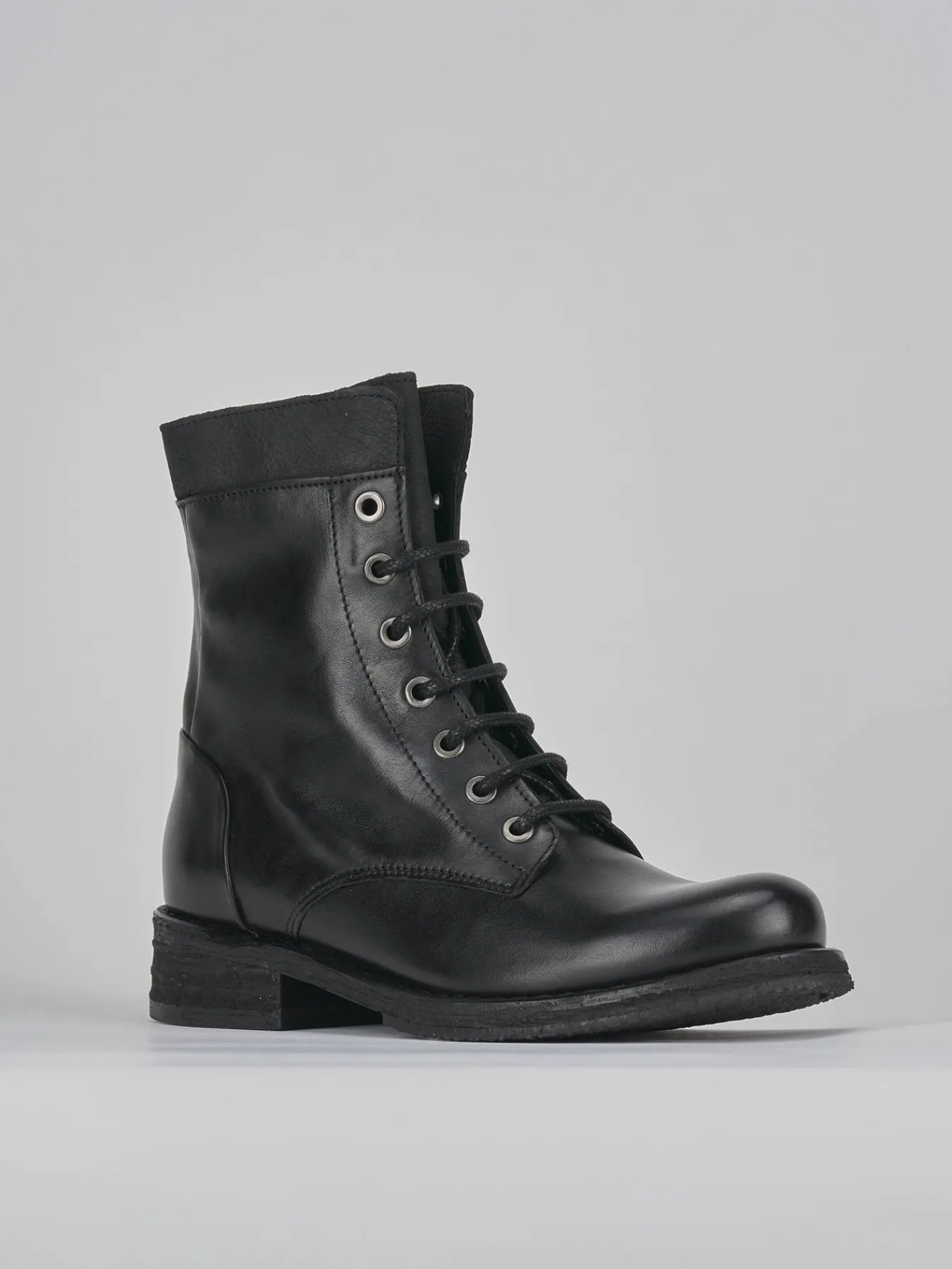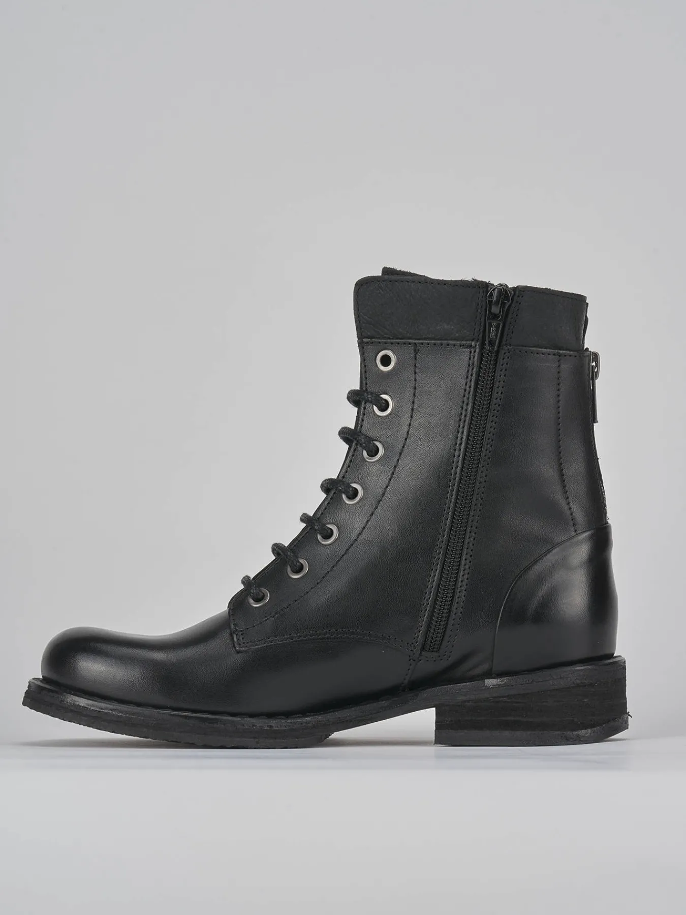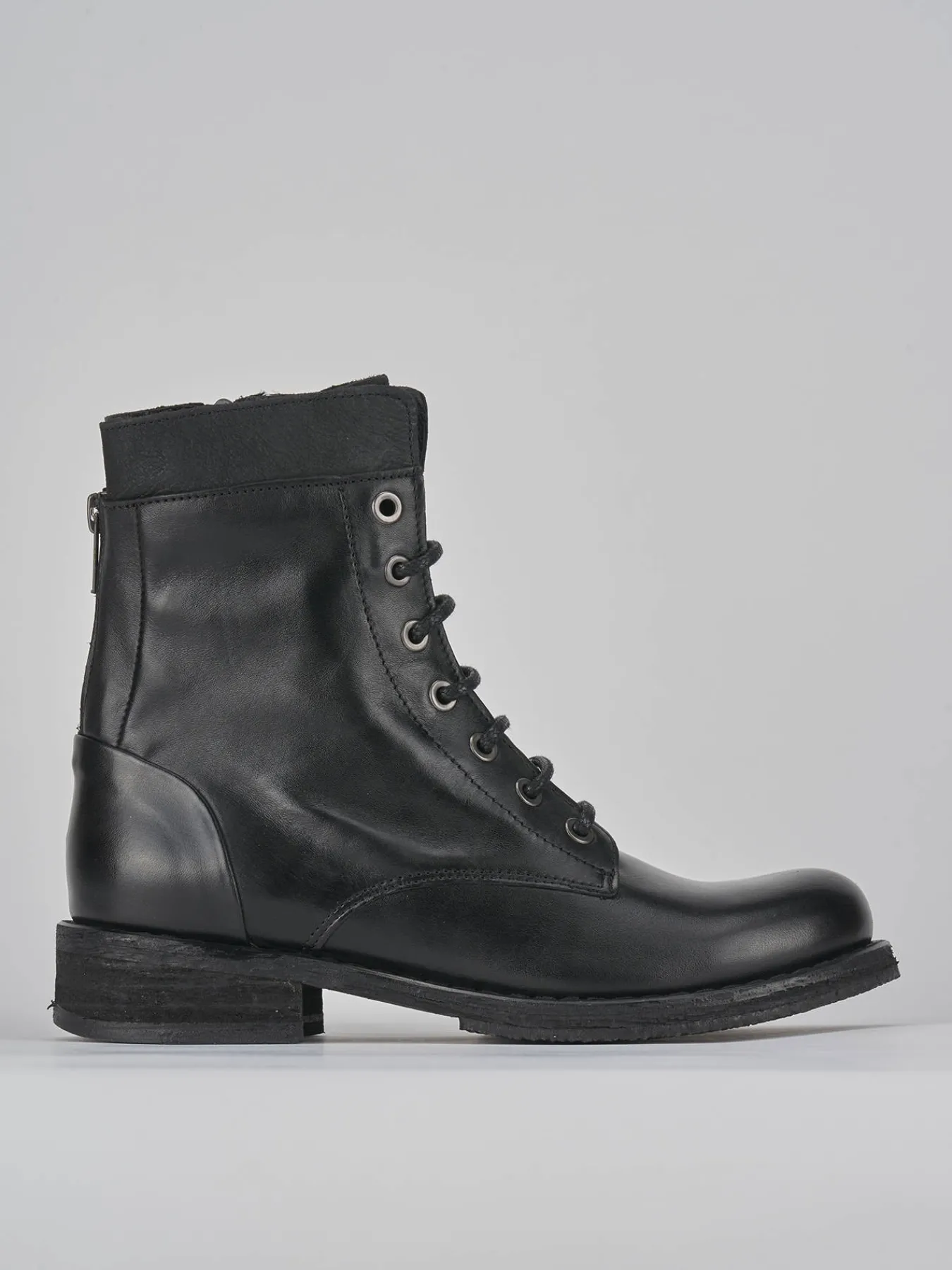 Anfibio tacco 2 cm fondo in cuoio con riporti in gomma e soletto interno in vera pelle. Tomaia in morbida pelle, punta tonda, lace con occhielli in metallo e doppia cerniera. adatto e versatile per ogni tuo look.