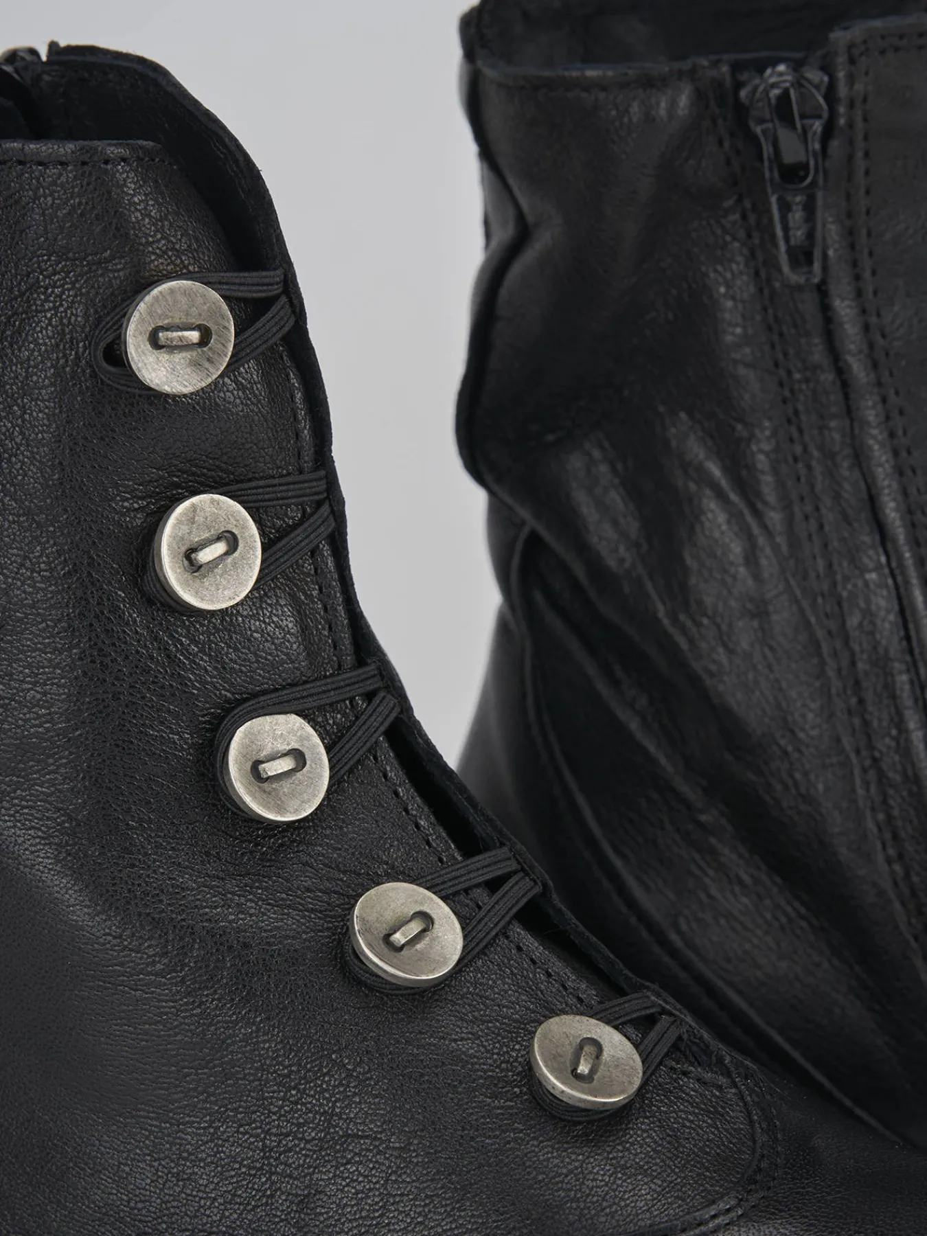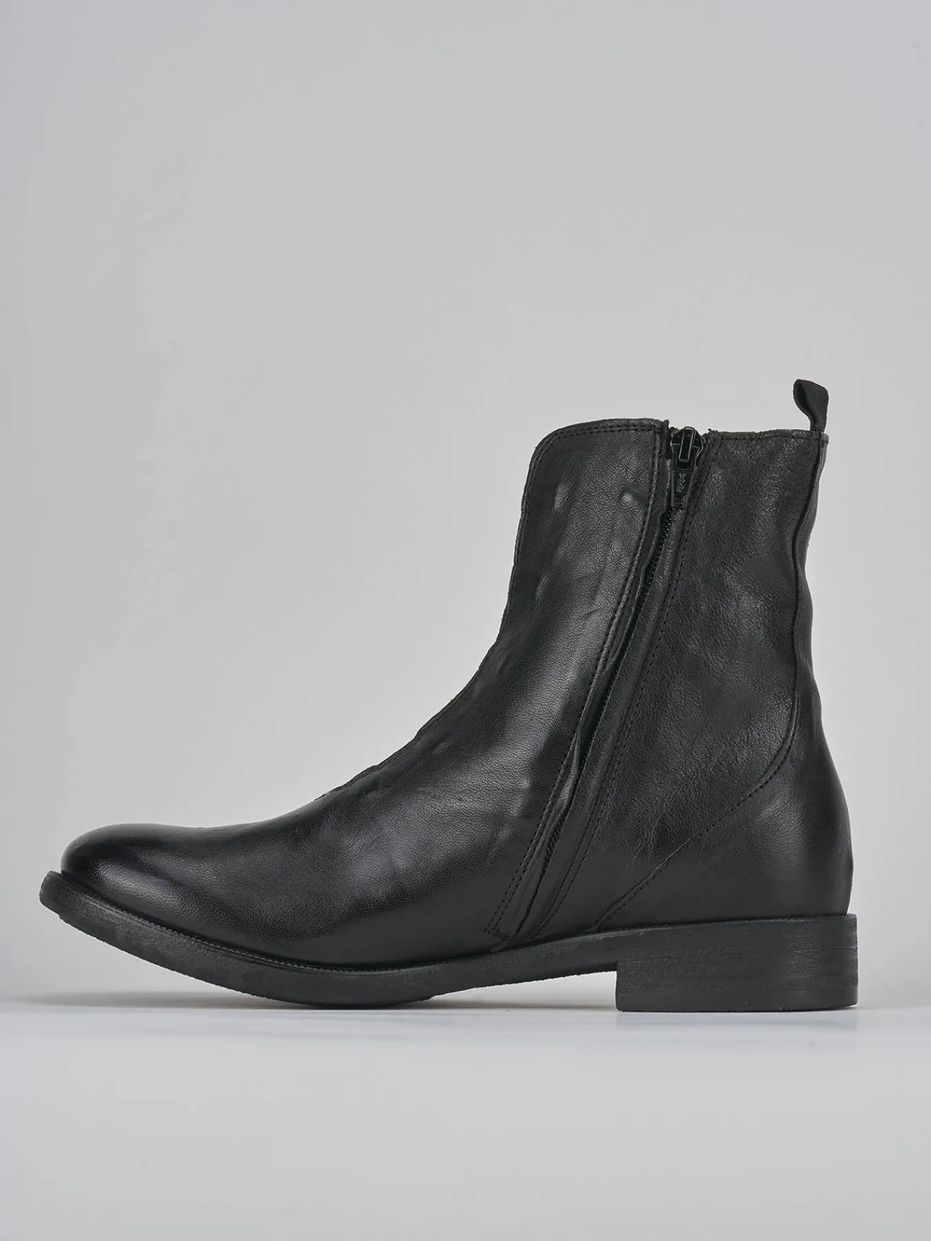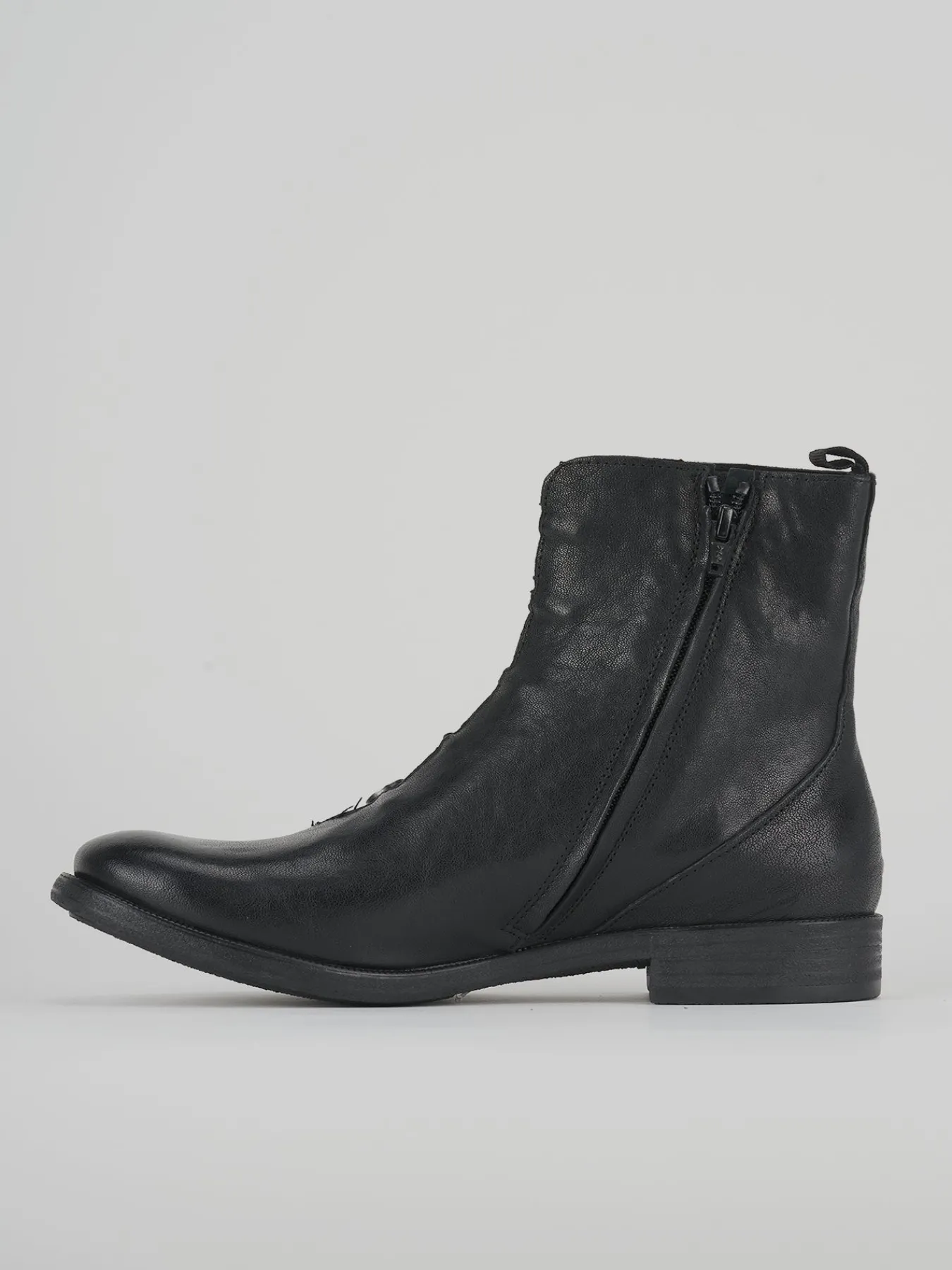 anfibio tacco 3 cm fondo cuoio e soletto interno in vera pelle. tomaia in morbida pelle, punta tonda, comoda cerniera laterale e accessori a bottone in metallo per un look chic.