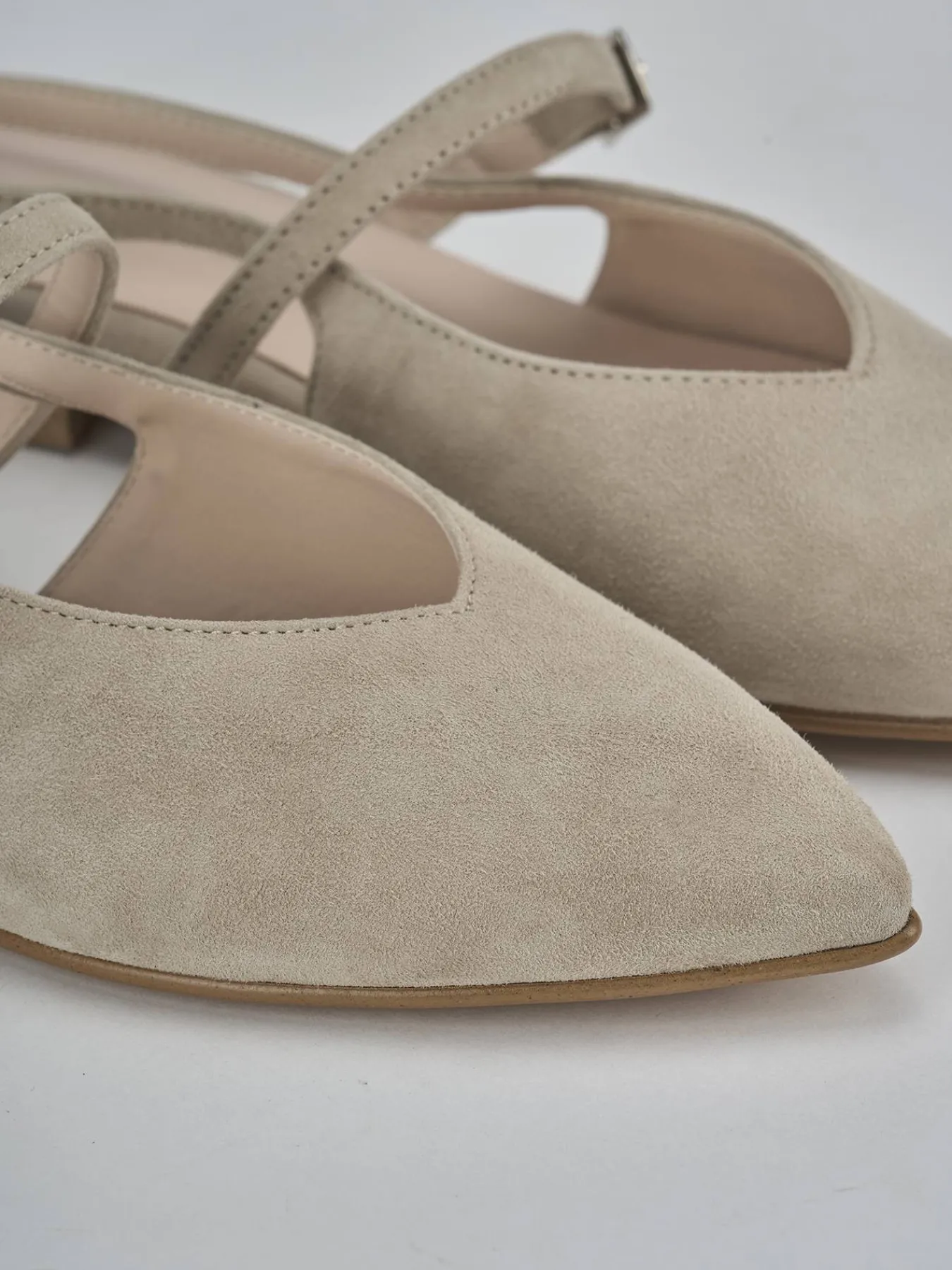 La tomaia in morbido camoscio e la punta sfilata conferiscono un tocco di classe, mentre lo scollo a ‘V’ e le cuciture a mano aggiungono dettagli di pregio.