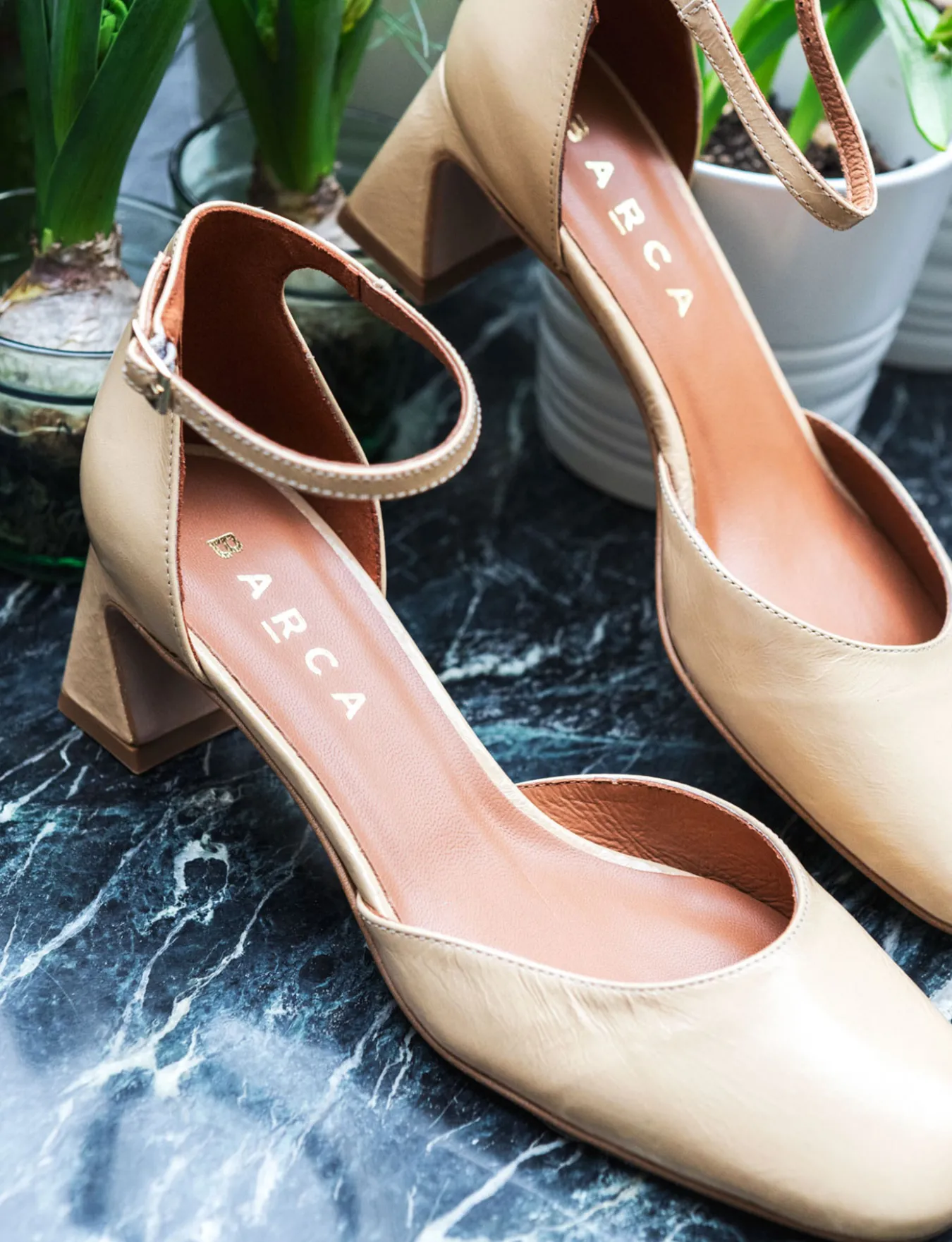 Bebe’ tacco 5 cm fondo in cuoio e soletto interno in vera pelle. Tomaia in morbida pelle effetto verniciato, punta leggermente squadrata, scollo svasato, cinturino in caviglia con fibbia regolabile e nuovissimo tacco rocchetto. perfetto con una gonna o dei jeans vintage.