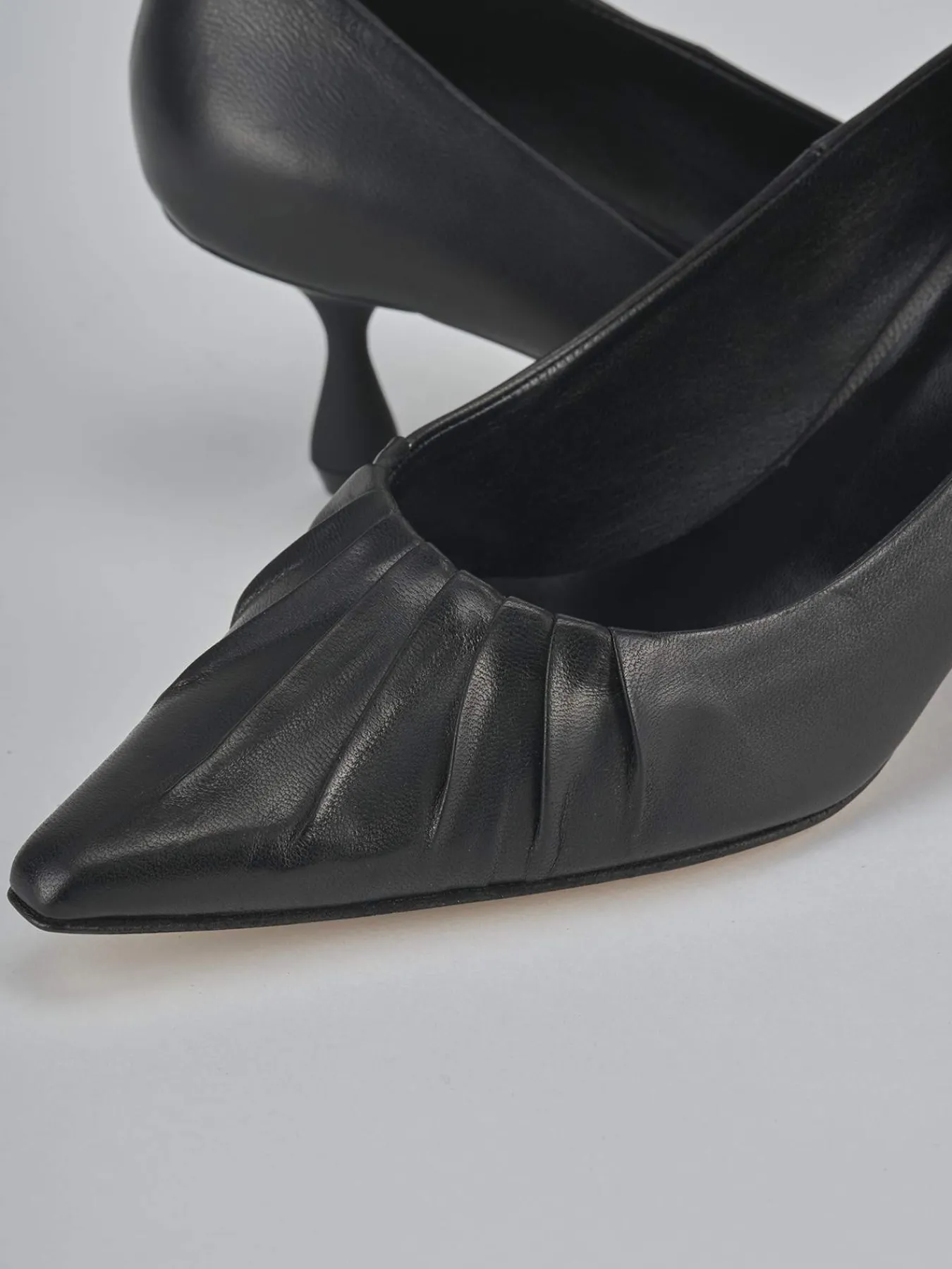 Decolte’ tacco 6 cm fondo in cuoio e soletto interno in vera pelle. Tomaia in morbida pelle, punta sfilata, scollo morbido leggermente squadrato, arricciato sulla punta e e nuovissimo tacco a clessidra. Perfetto con una camicia e una gonna plissetata.