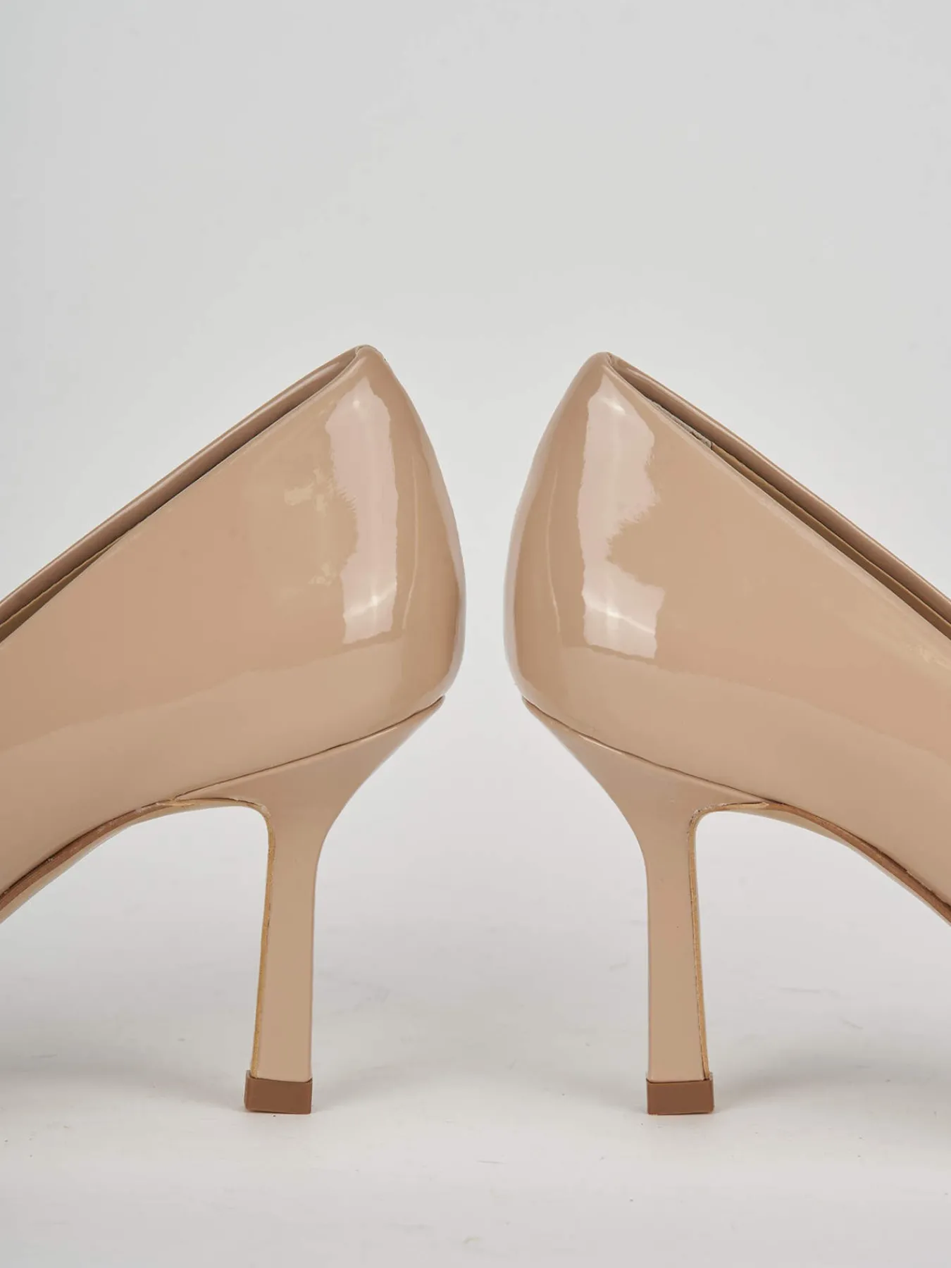 La tomaia in morbida pelle verniciata si distingue per la sua lucentezza raffinata, mentre la punta sfilata conferisce un aspetto moderno e sofisticato.