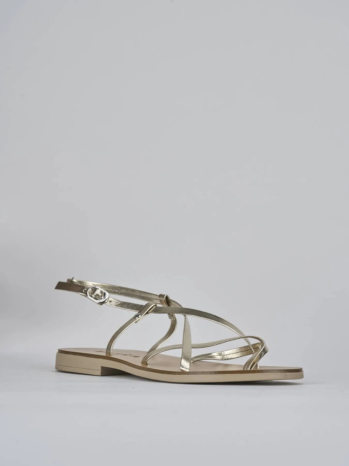 La tomaia è realizzata in morbida pelle con sottili fascette incrociate che conferiscono un look cool e sofisticato.