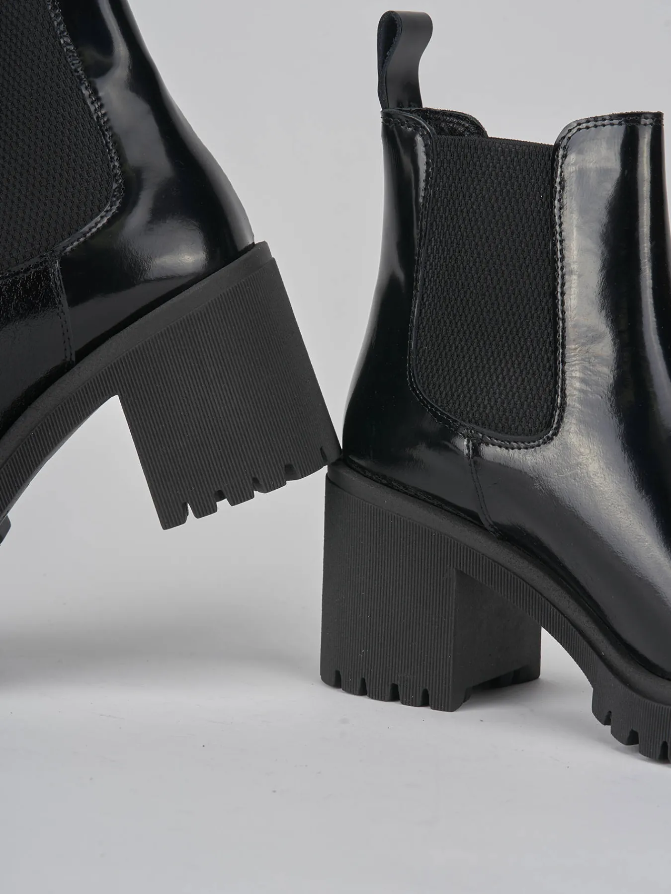Stivaletto tacco 6 cm fondo in gomma e soletto interno in vera pelle. Tomaia in morbida pelle effetto lucido, tessuto elasticizzato ai lati e fondo extra light per un look cool.