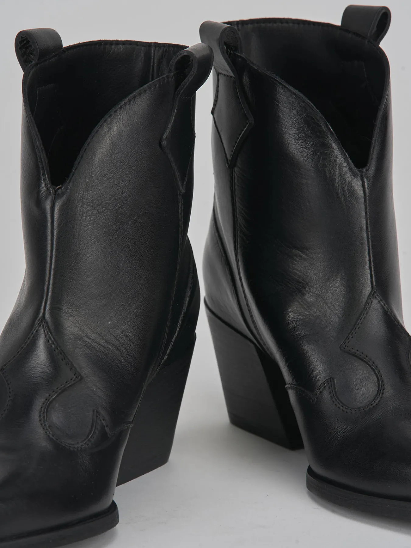 Stivaletto texano tacco 8 cm fondo in gomma e soletto interno in vera pelle. Tomaia in morbida pelle, punta sfilata, cuciture visibili e in rilievo, ghette laterali e apertura frontale a ‘V’. Comodo tacco cubano e guardolo sporgente per un look trendy.