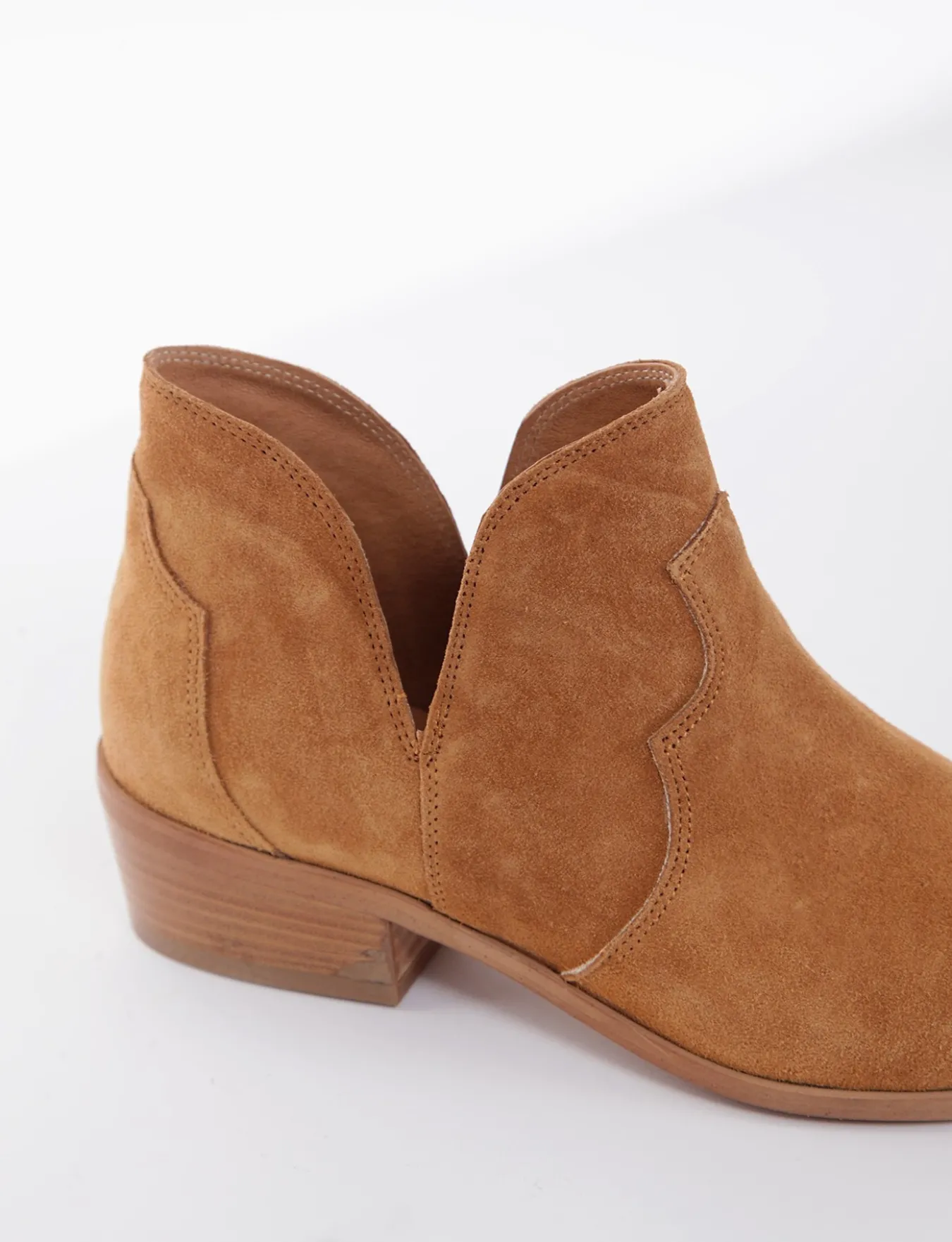 stivaletto texano tacco 4 cm, fondo in cuoio e soletto interno in vera pelle. Tomaia in morbidissimo camoscio con particolarissima apertura su entrambi i lati per una facile e veloce calzata.