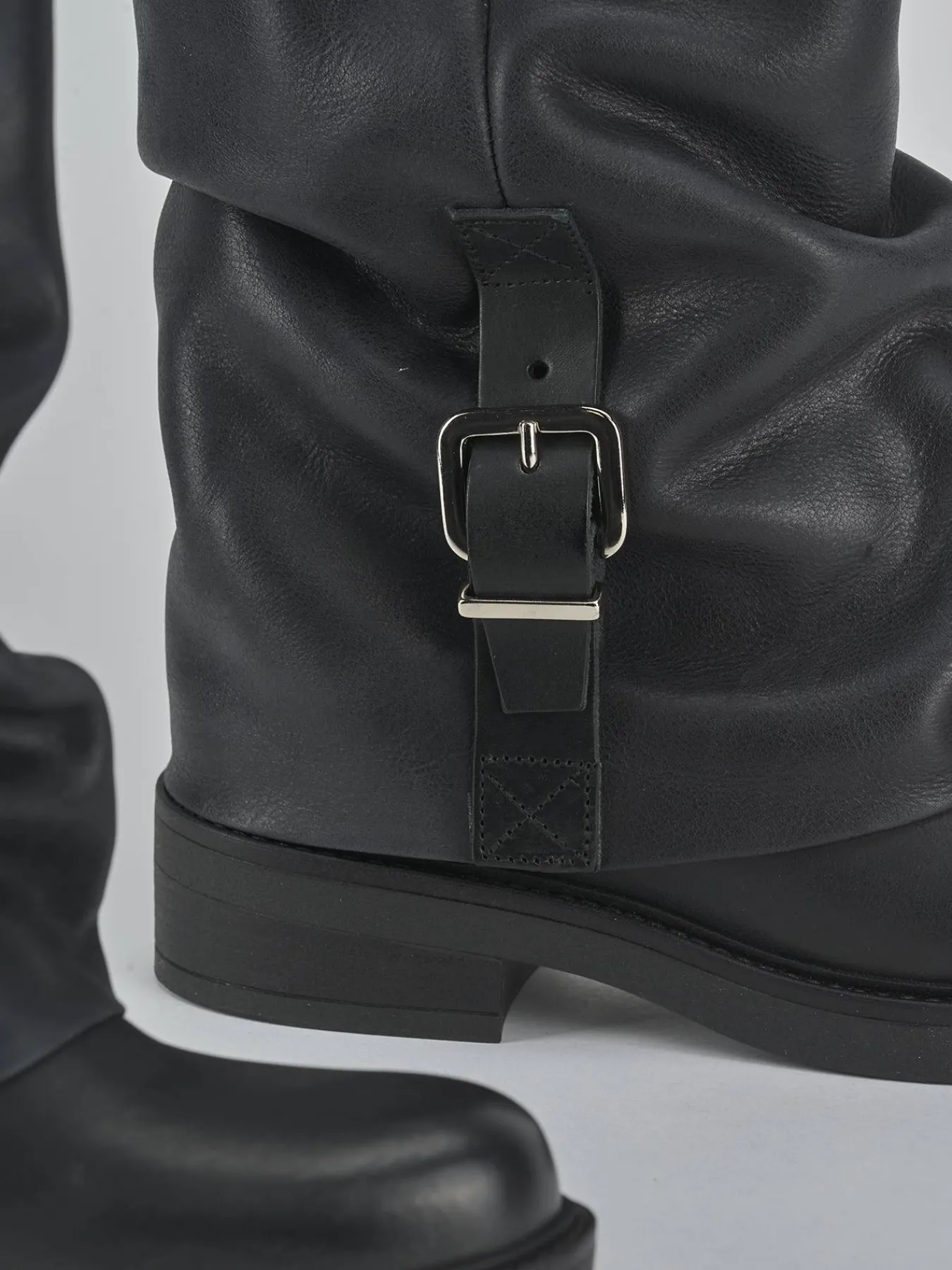 Il design biker, con punta affusolata e cuciture visibili, aggiunge un tocco moderno e grintoso.