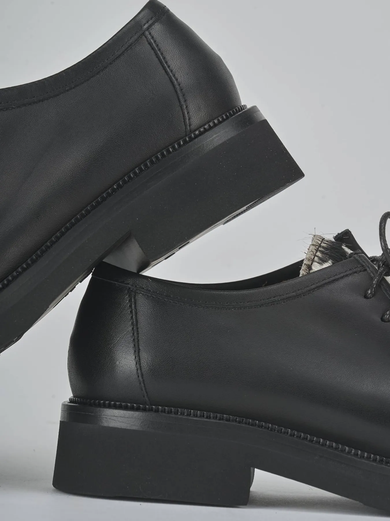 Le cuciture alla norvegese e gli inserti in pelle foderata in cavallino muccato donano un dettaglio distintivo e unico.