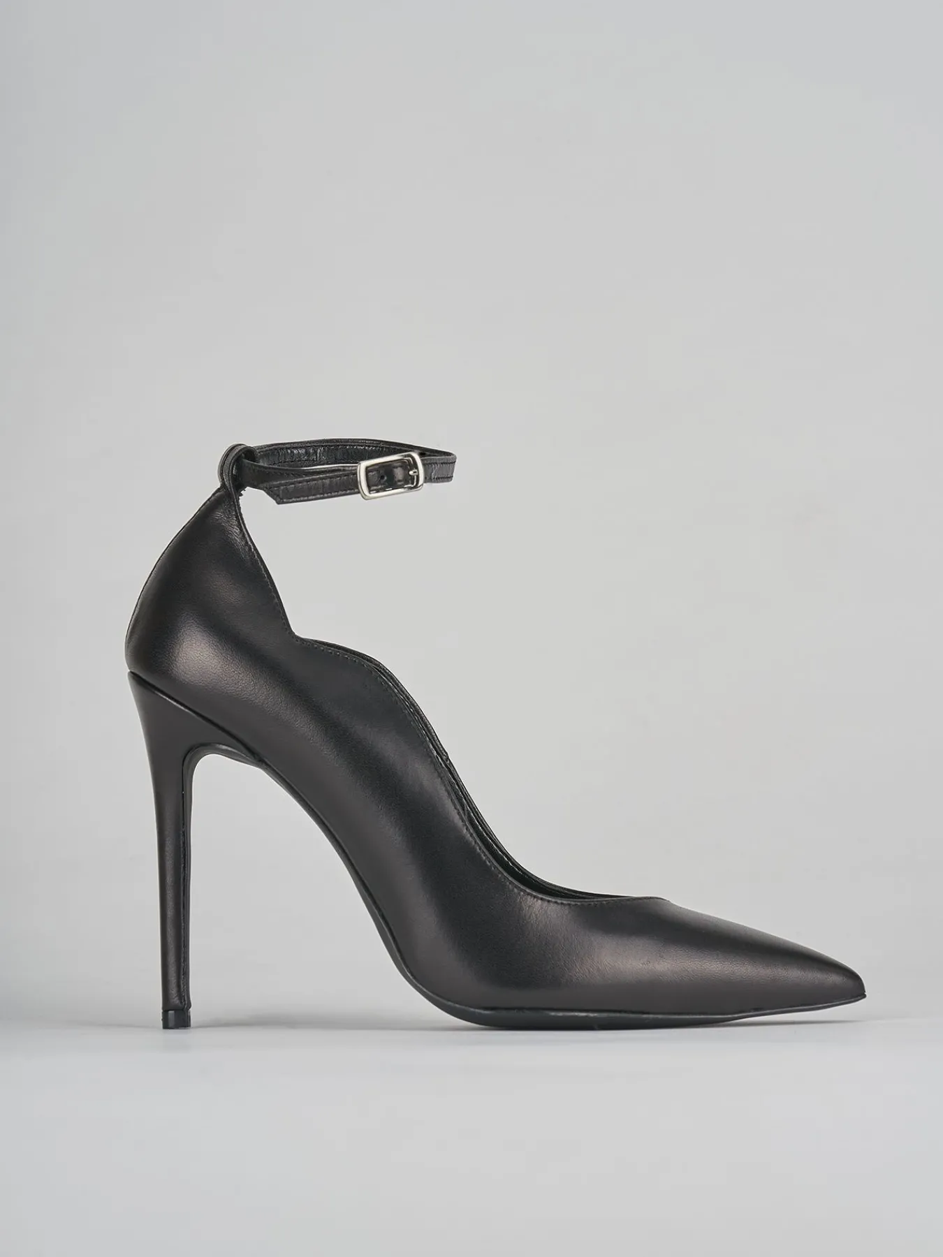 La tomaia in morbida nappa avvolge il piede con delicatezza, mentre l’elegante cinghietta alla caviglia aggiunge un dettaglio sofisticato.