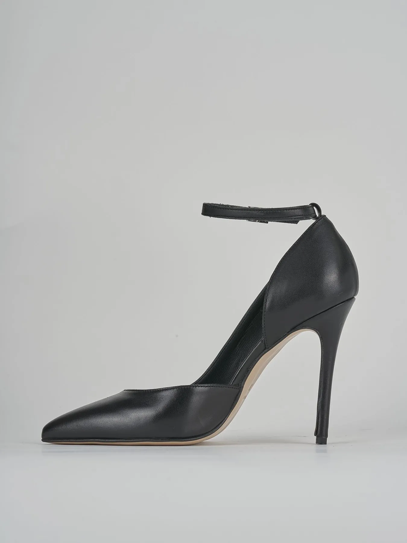 Realizzato in pelle nera nappata, offre una punta sfilata che conferisce raffinatezza e modernità.
