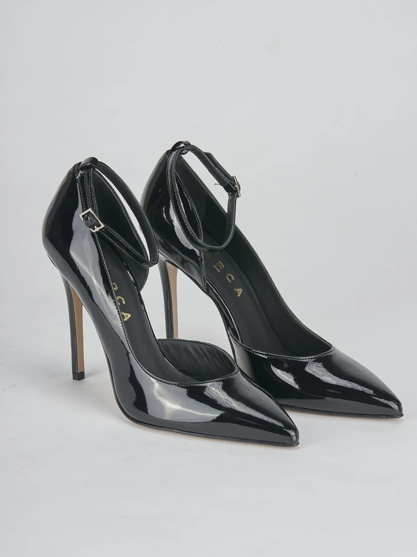 La tomaia in morbida pelle effetto verniciato dà un tocco di lusso ed eleganza.