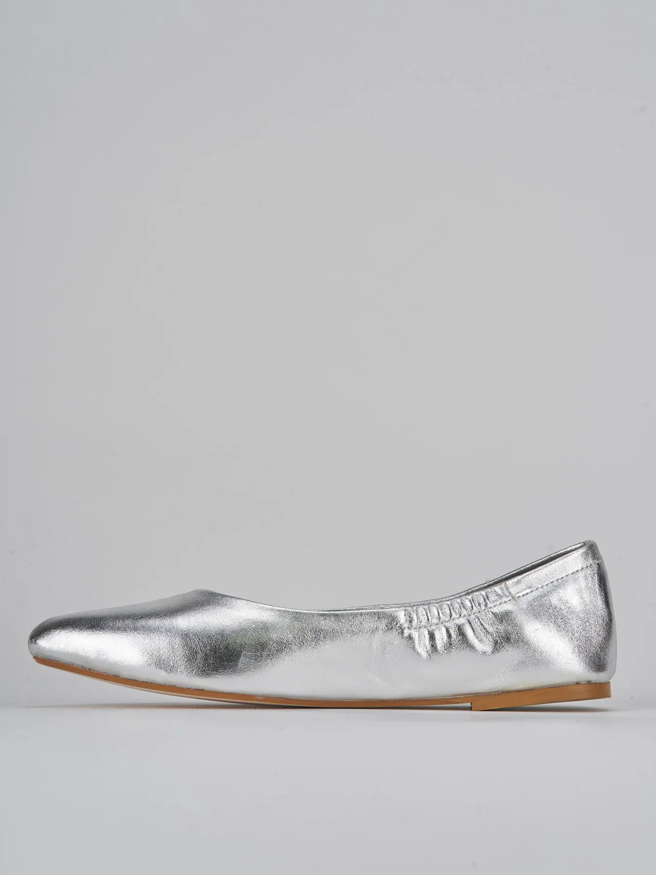 La tomaia in morbida pelle laminata, abbinata alla punta sfilata e allo scollo a ‘V’, conferisce un tocco di raffinatezza.