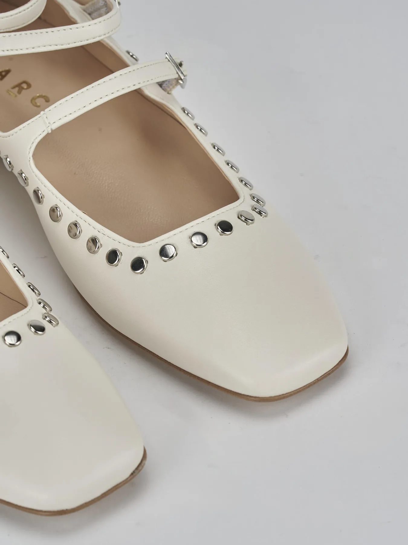 La tomaia in morbida pelle si adatta perfettamente al piede, mentre la punta e lo scollo squadrati aggiungono un tocco di modernità.