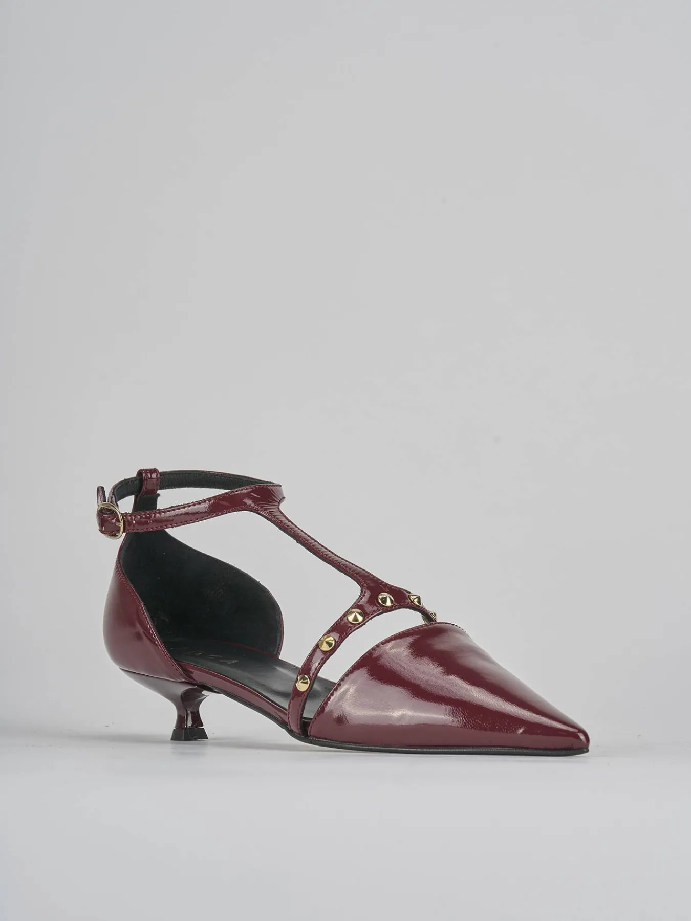 La tomaia in morbida pelle effetto verniciato dona un aspetto lucido e sofisticato, mentre la punta sfilata aggiunge un tocco di classe.