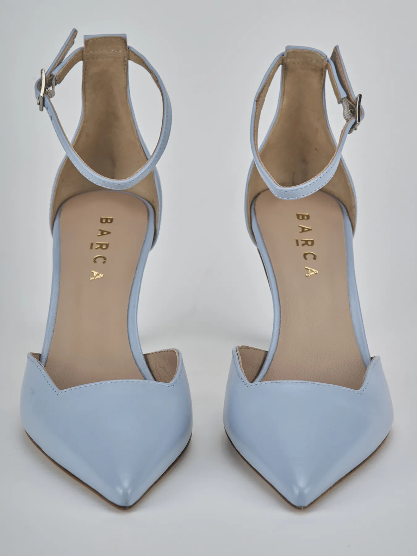 Bebe’ tacco 8 cm fondo cuoio e soletto interno in vera pelle. Tomaia in morbida pelle, punta sfilata, scollo squadrato, cuciture a mano, cinturino con fibbia regolabile e tacco rocchetto. Dal design ricercato che dura nel tempo.