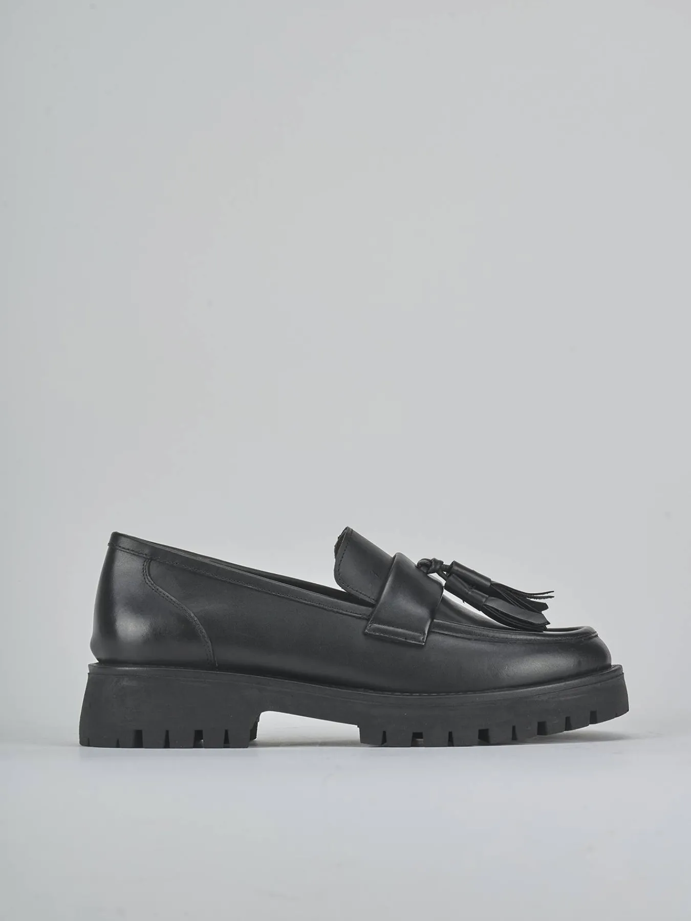 Realizzati in morbida pelle nera, questi mocassini offrono un design elegante e versatile.