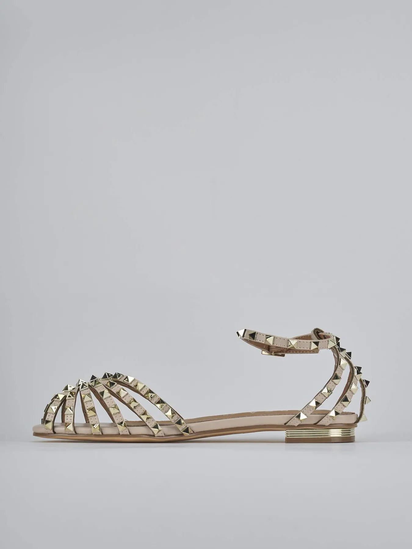 La tomaia presenta una punta affusolata e affascinanti fascette sia sulla punta che sul tallone, arricchite da borchie che aggiungono un tocco di modernità.