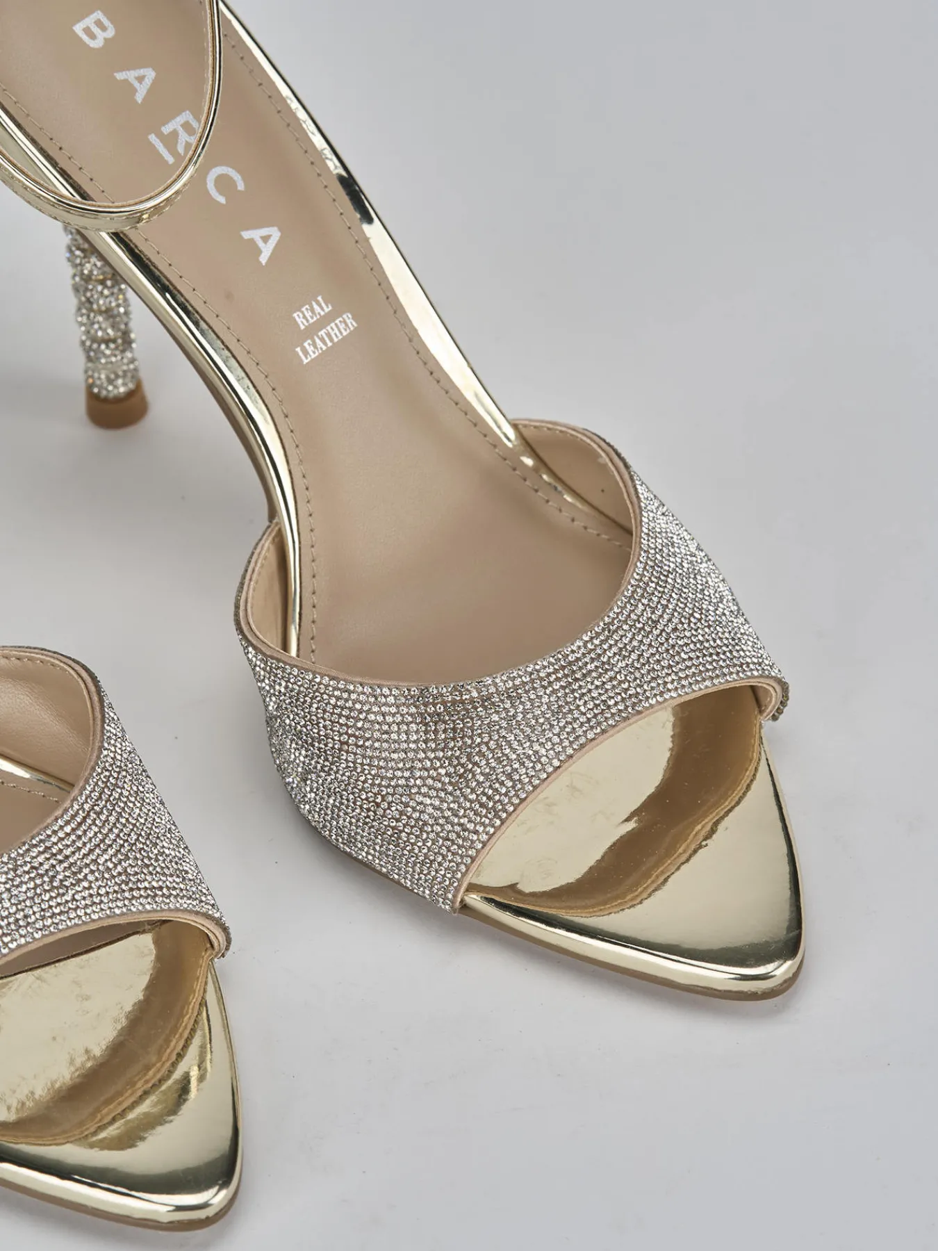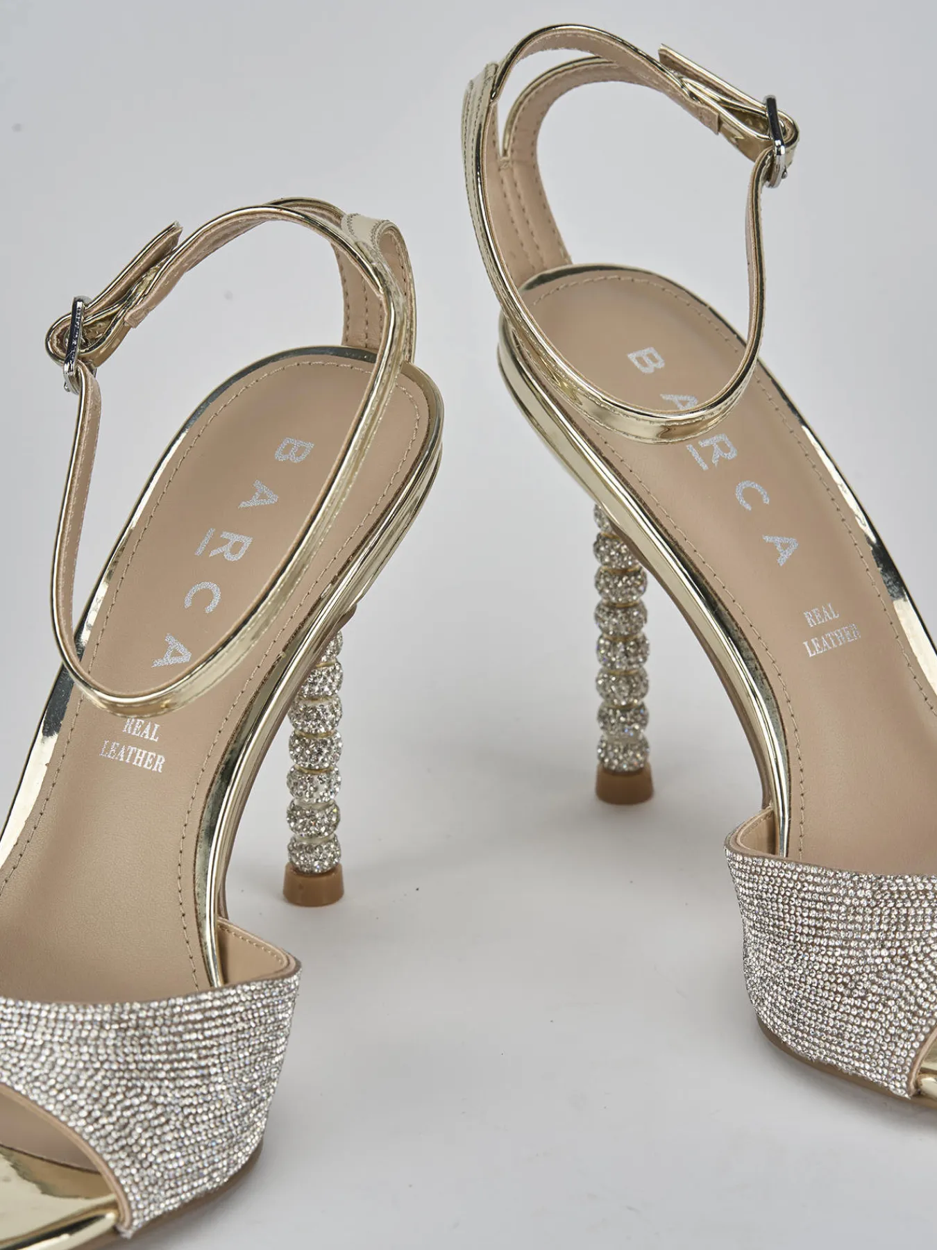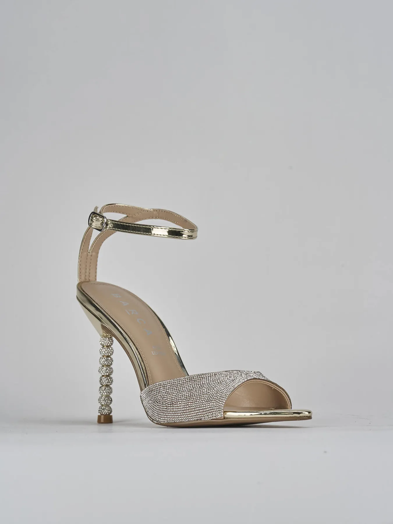 Sandalo tacco 9 cm fondo in leggerissima gomma e soletto interno in vera pelle. tomaia in morbida pelle, punta sfilata, fascia unica, strass, cinturino in caviglia con fibbia regolabile e tacco fino con particolarissimi accessori strass. Perfetto per le tue serate più cool.
