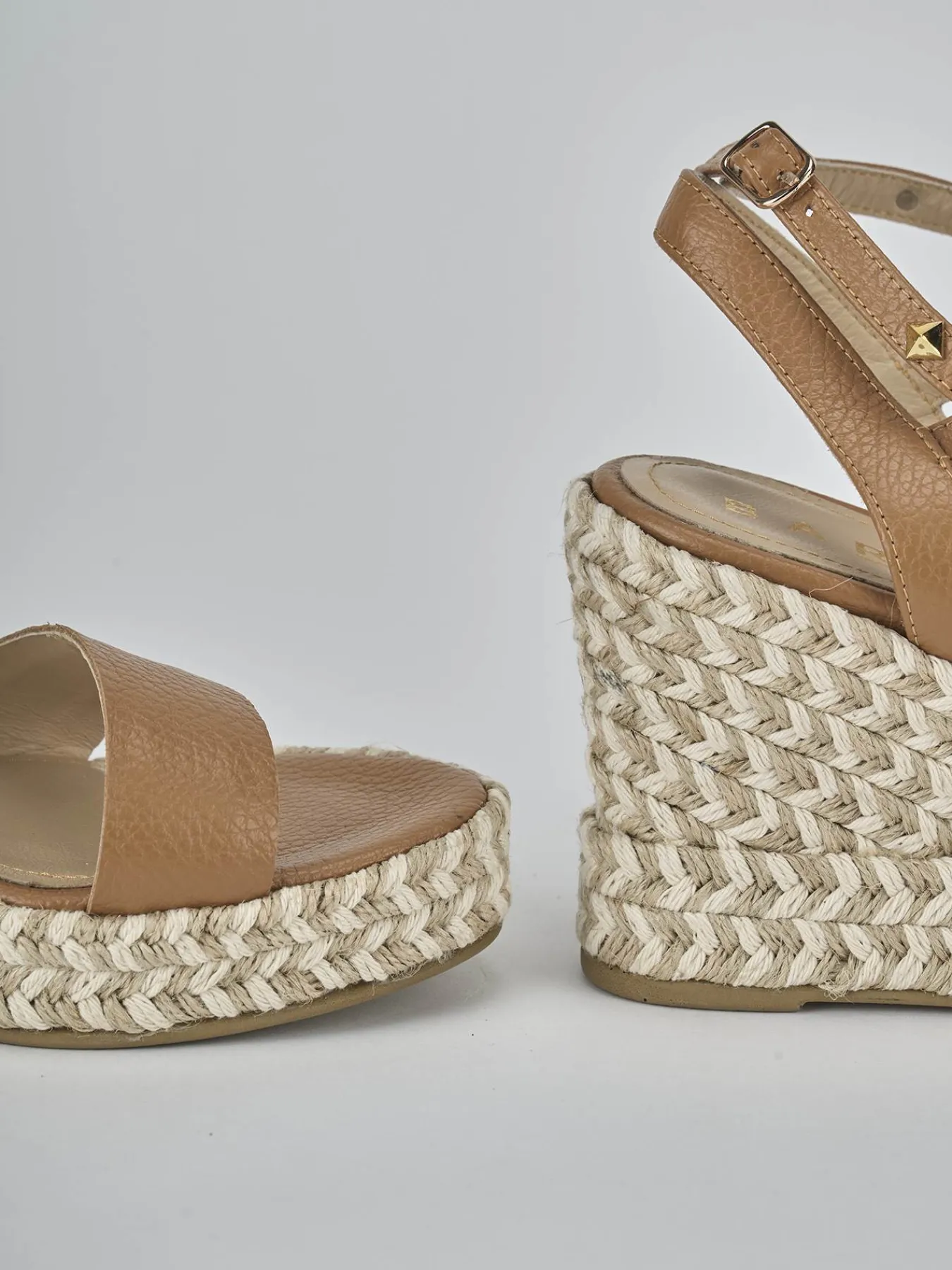 Sandalo zeppa 9 cm fondo in leggerissima gomma e soletto interno in vera pelle. Tomaia in morbida pelle, punta affusolata, fascia unica in punta, cinturini incrociati in caviglia con fibbia regolabile e borchie per un tocco cool ai tuoi look.