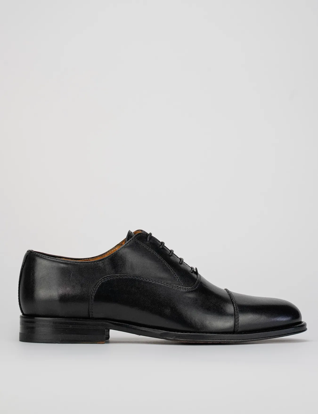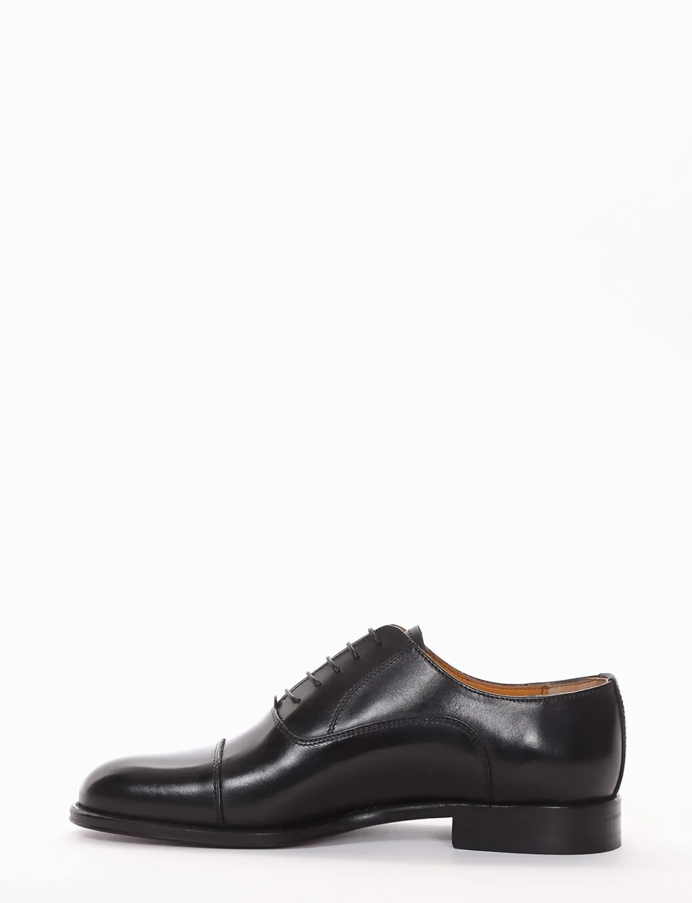 scarpa lacci tacco 2 cm, fondo in cuoio e soletto interno in vera pelle. Tomaia in morbidissima pelle di vitello con allacciatura a cinque fori e puntale evidenziato da doppia cucitura.