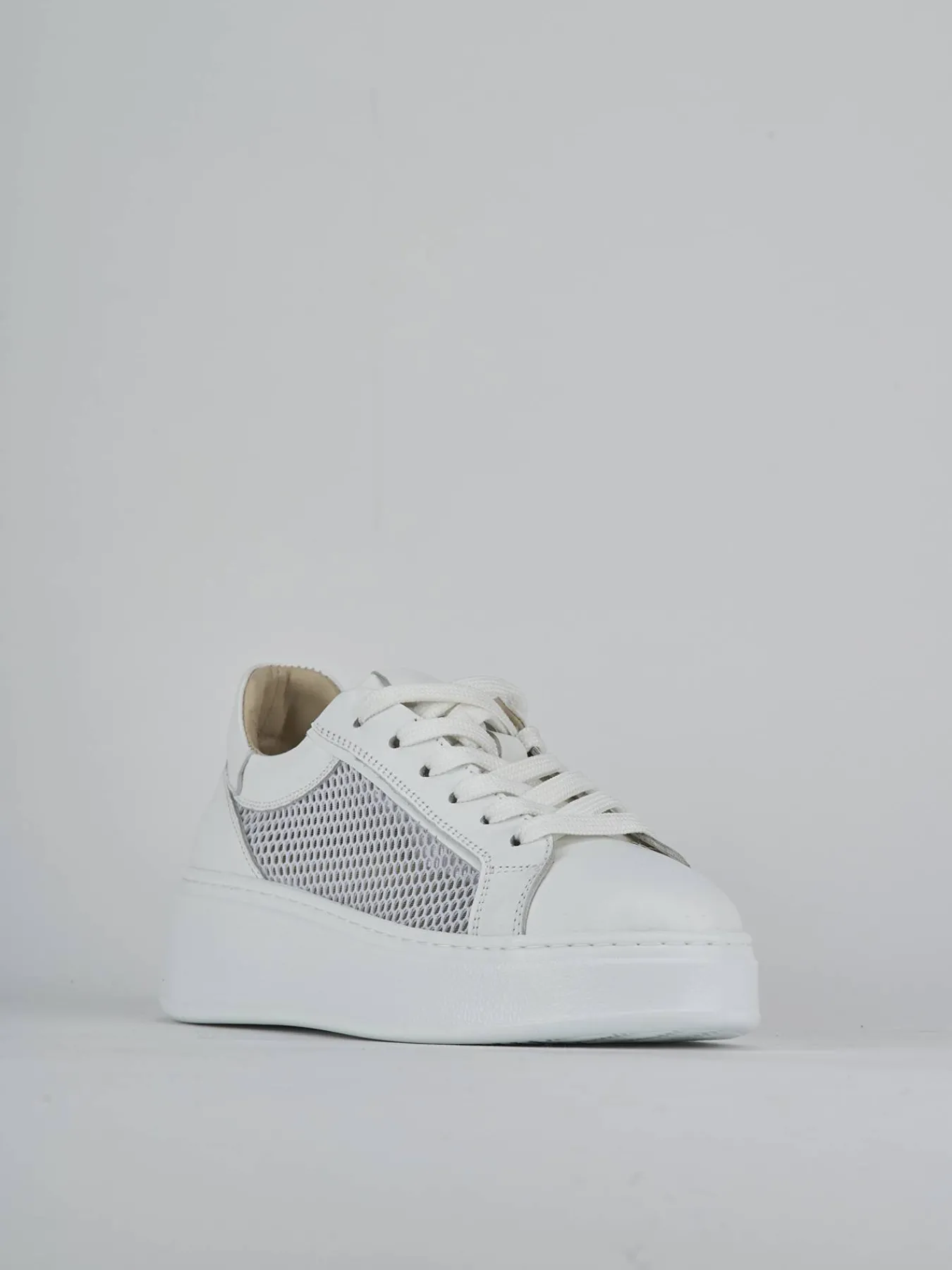 La tomaia presenta una rete elegante che aggiunge un tocco di originalità, mentre la punta affusolata e i lacci senza occhielli completano il look sofisticato.