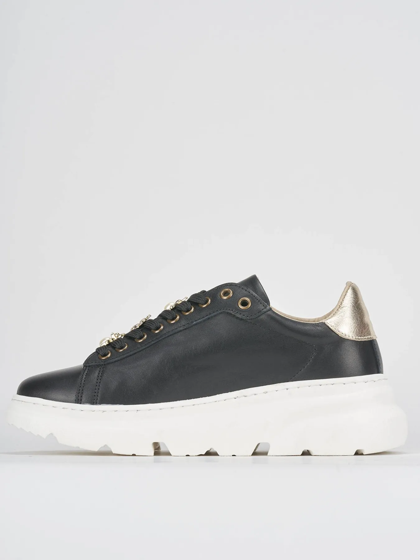 La tomaia in morbida pelle nera si combina con un fondo in gomma robusto, garantendo comfort e durata.