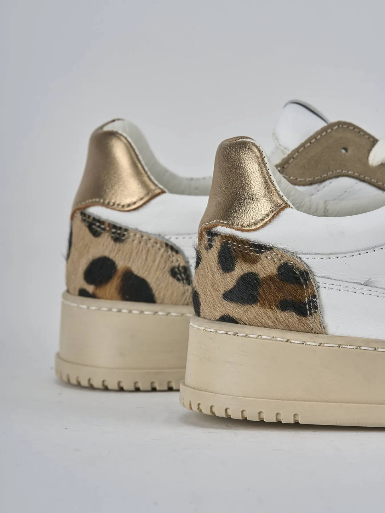 I dettagli in camoscio bicolor aggiungono un tocco di originalità, mentre le cuciture visibili e il topponcino a contrasto sul tallone donano un look cool e contemporaneo.