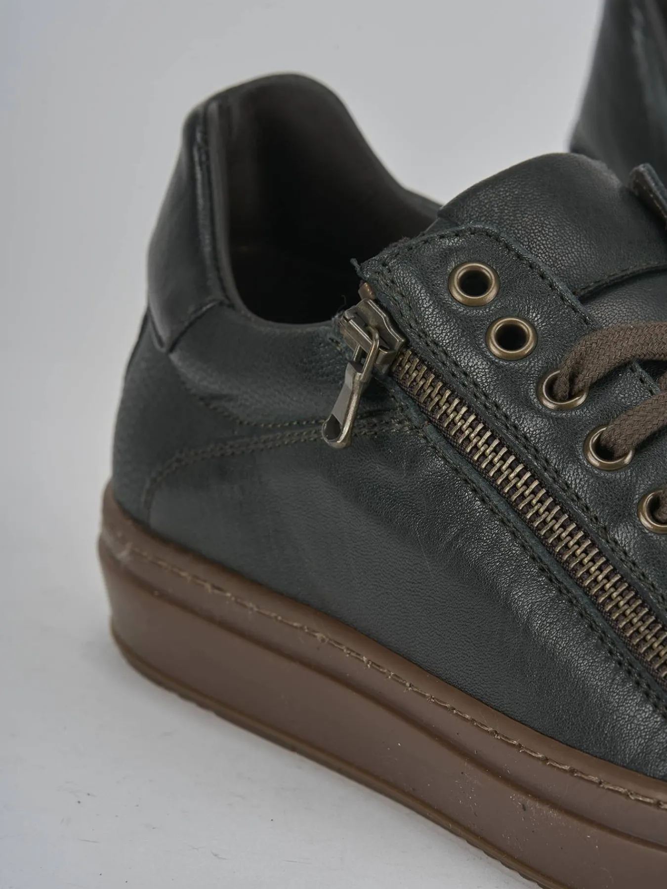 Le cuciture visibili e il lace con occhielli in metallo aggiungono un tocco di eleganza al design.
