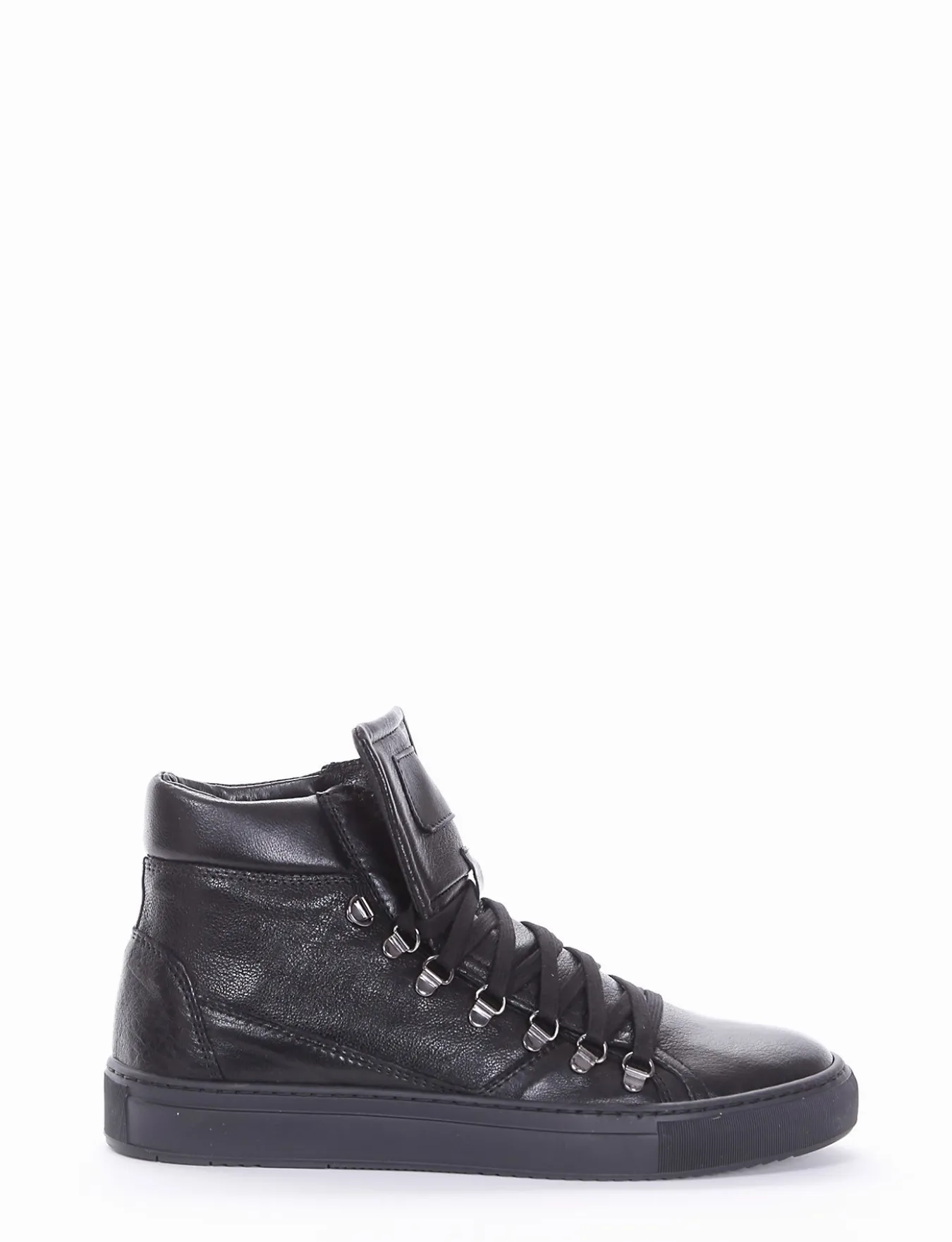 sneakers fondo in gomma e soletto interno in vera pelle. Tomaia in morbida pelle nappata con particolare allacciatura sul collo del piede. Nuovissimi anelli passalacci stile trekking.