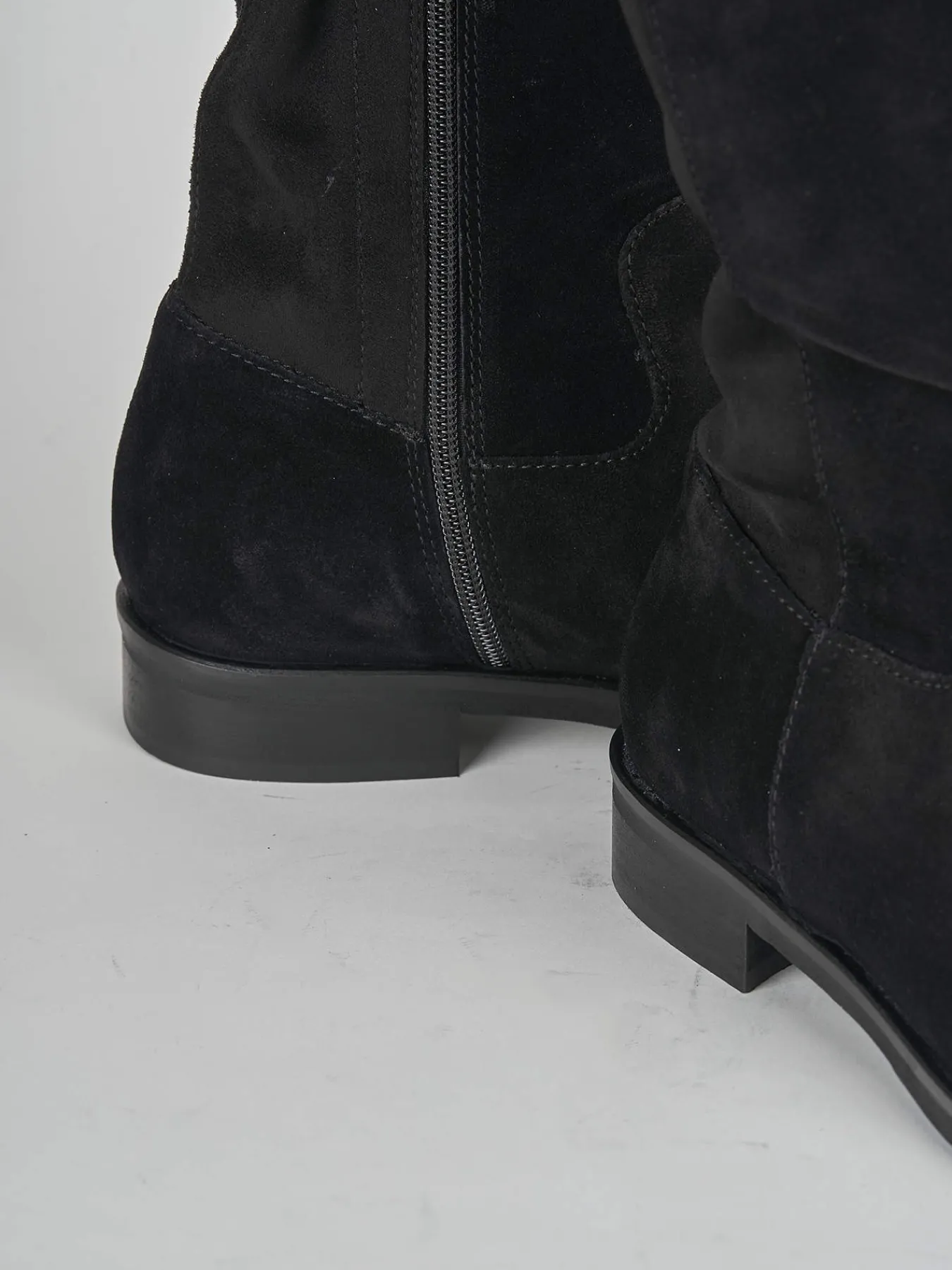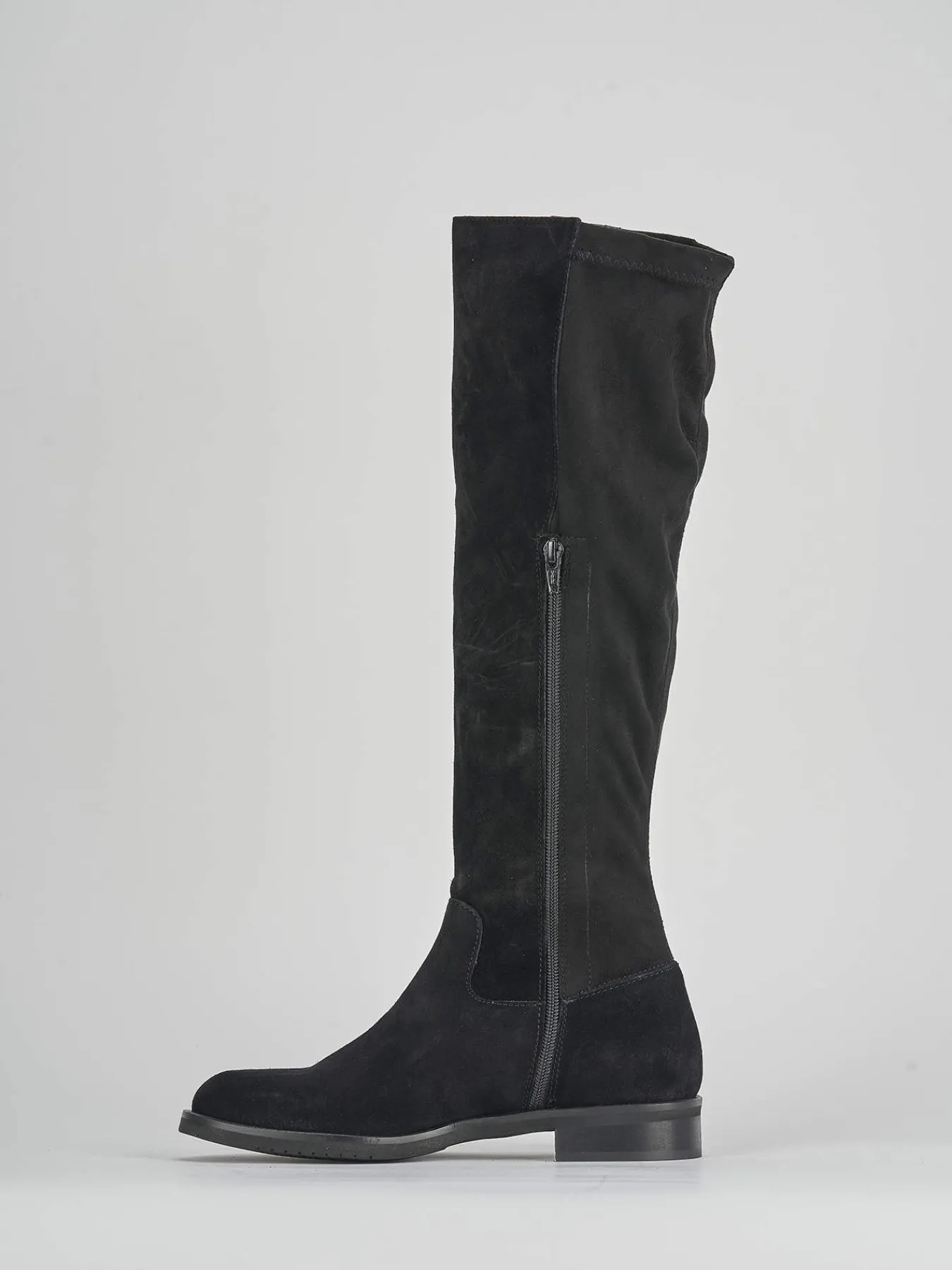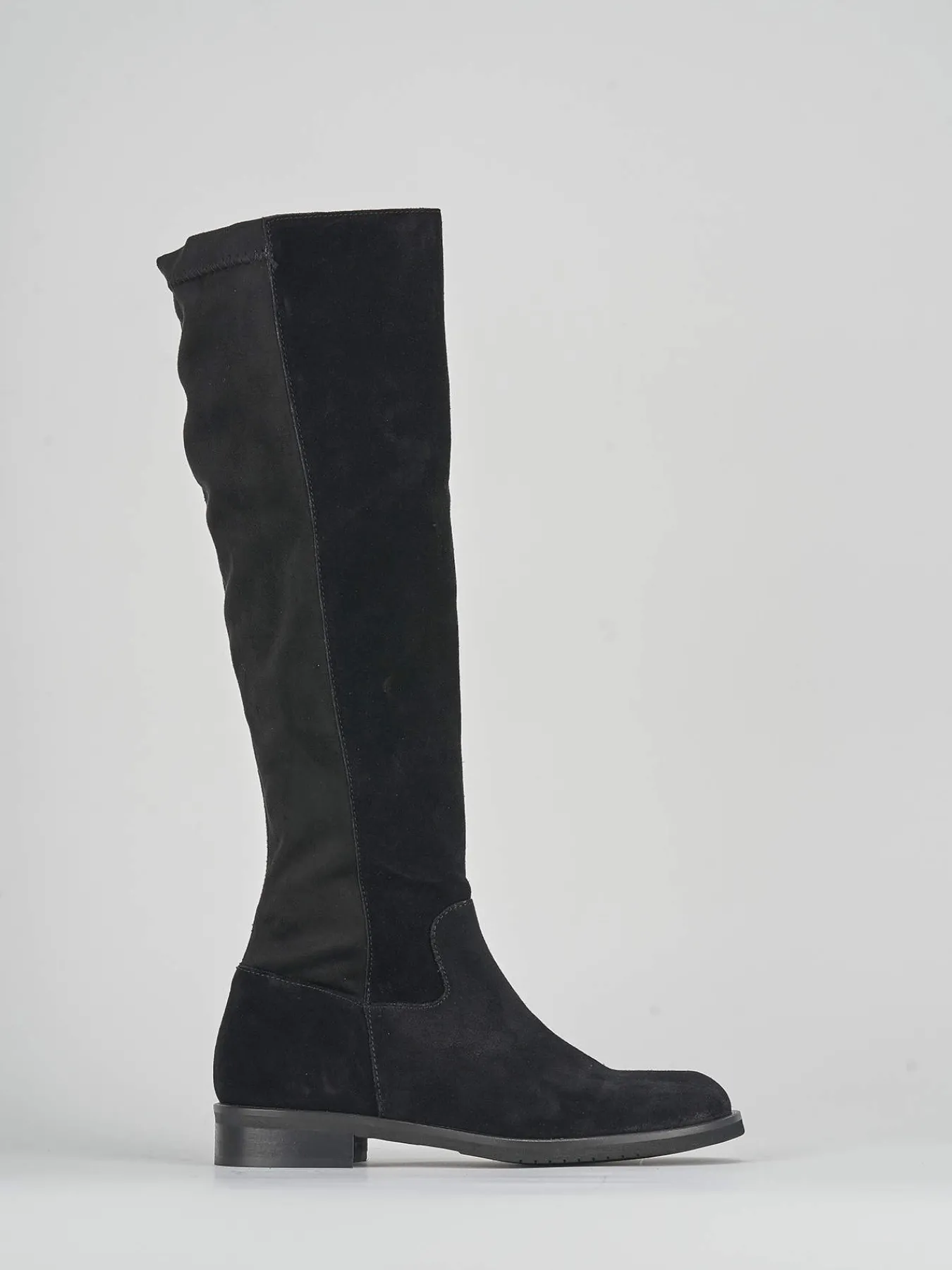 La tomaia è realizzata in morbidissimo camoscio, mentre il gambale elasticizzato si adatta perfettamente sotto il ginocchio, garantendo una vestibilità comoda per tutta la giornata.