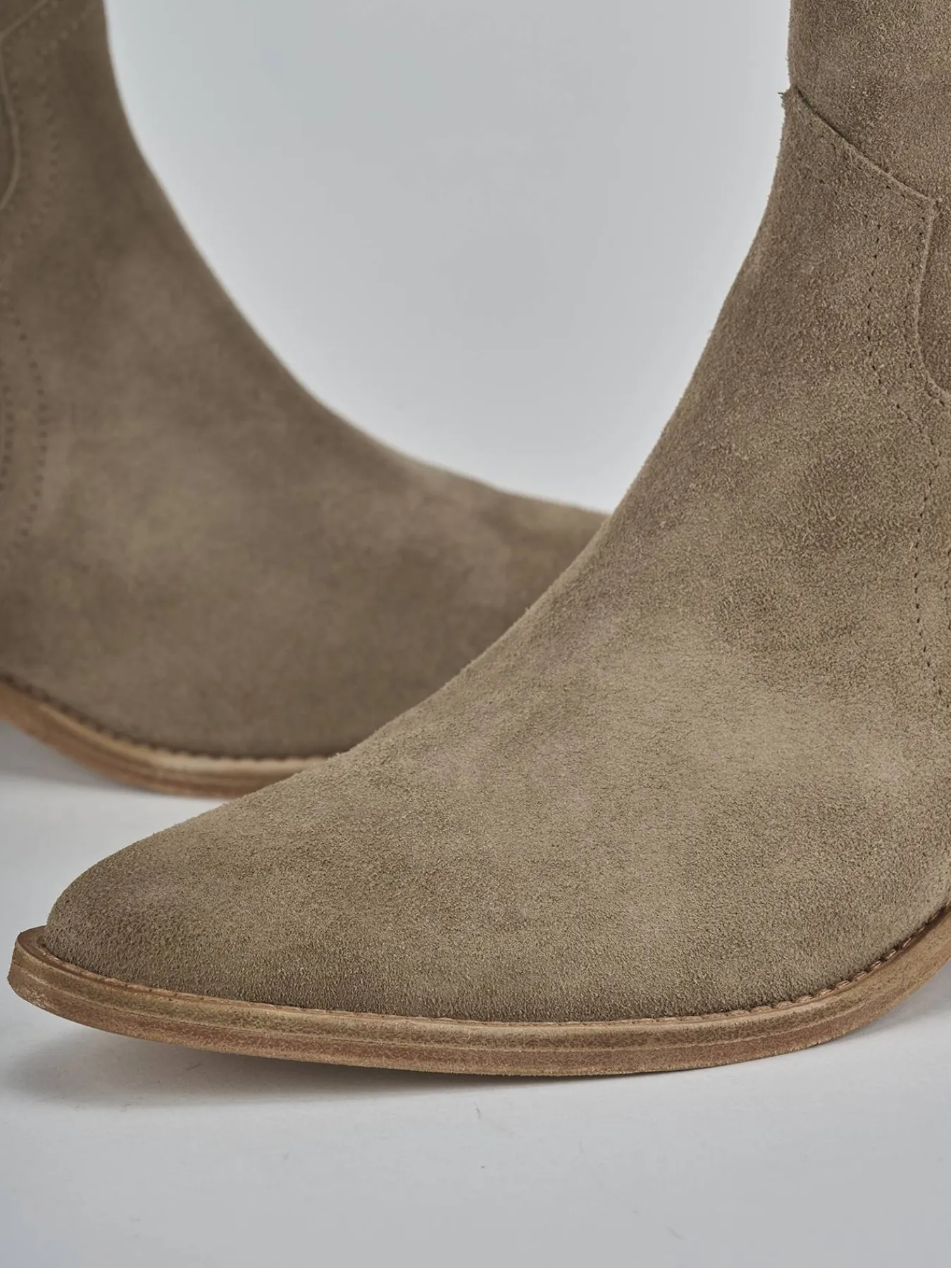Stivaletto tacco 4 cm fondo in leggera gomma e soletto interno in vera pelle. Tomaia in morbida pelle scamosciata, punta sfilata, cuciture a mano, lati leggermente elasticizzati e a strisce e tacco cubano. Per un look semplice ma che ti farà notare.