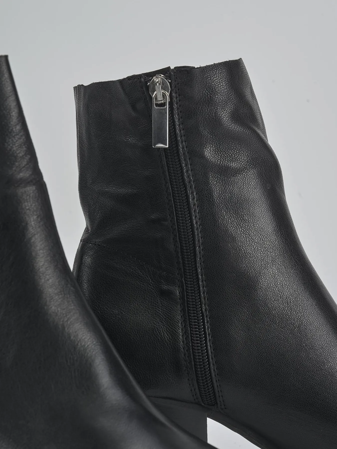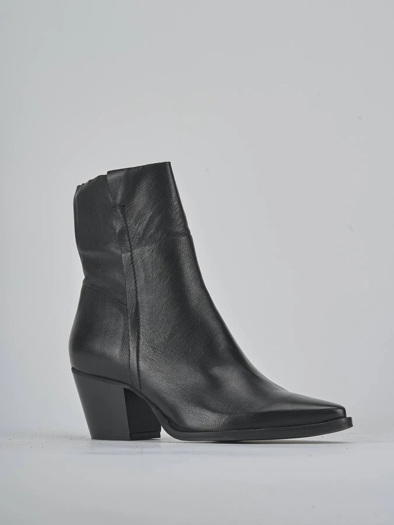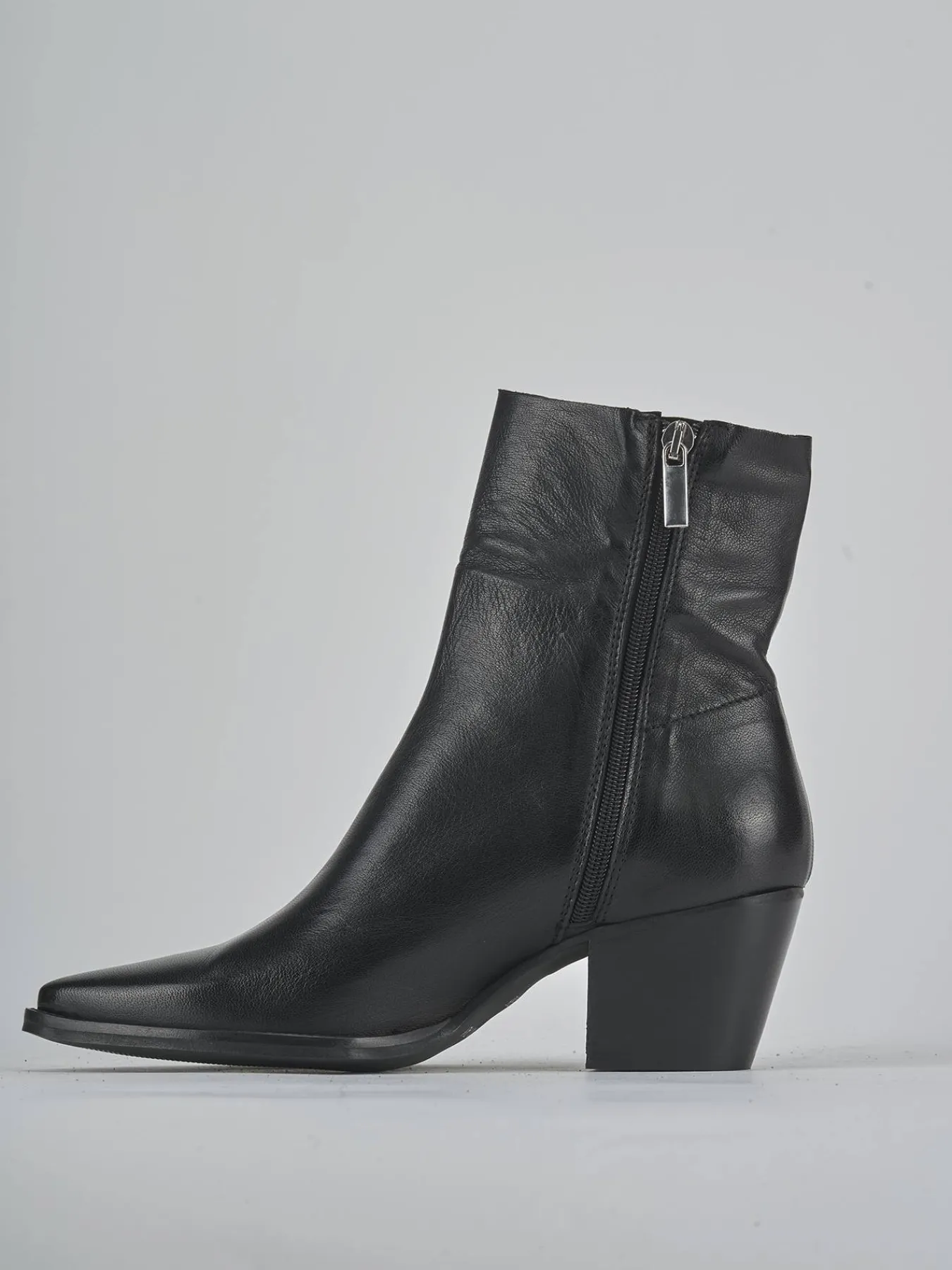 Stivaletto texano tacco 6 cm fondo in gomma e soletto interno in vera pelle. Tomaia in morbida pelle, punta sfilata, cuciture a mano, taglio morbido a vivo del gambale che arriva appena sopra la caviglia. Puntale in metallo, comoda cerniera laterale e tacco cubano per un look cool.
