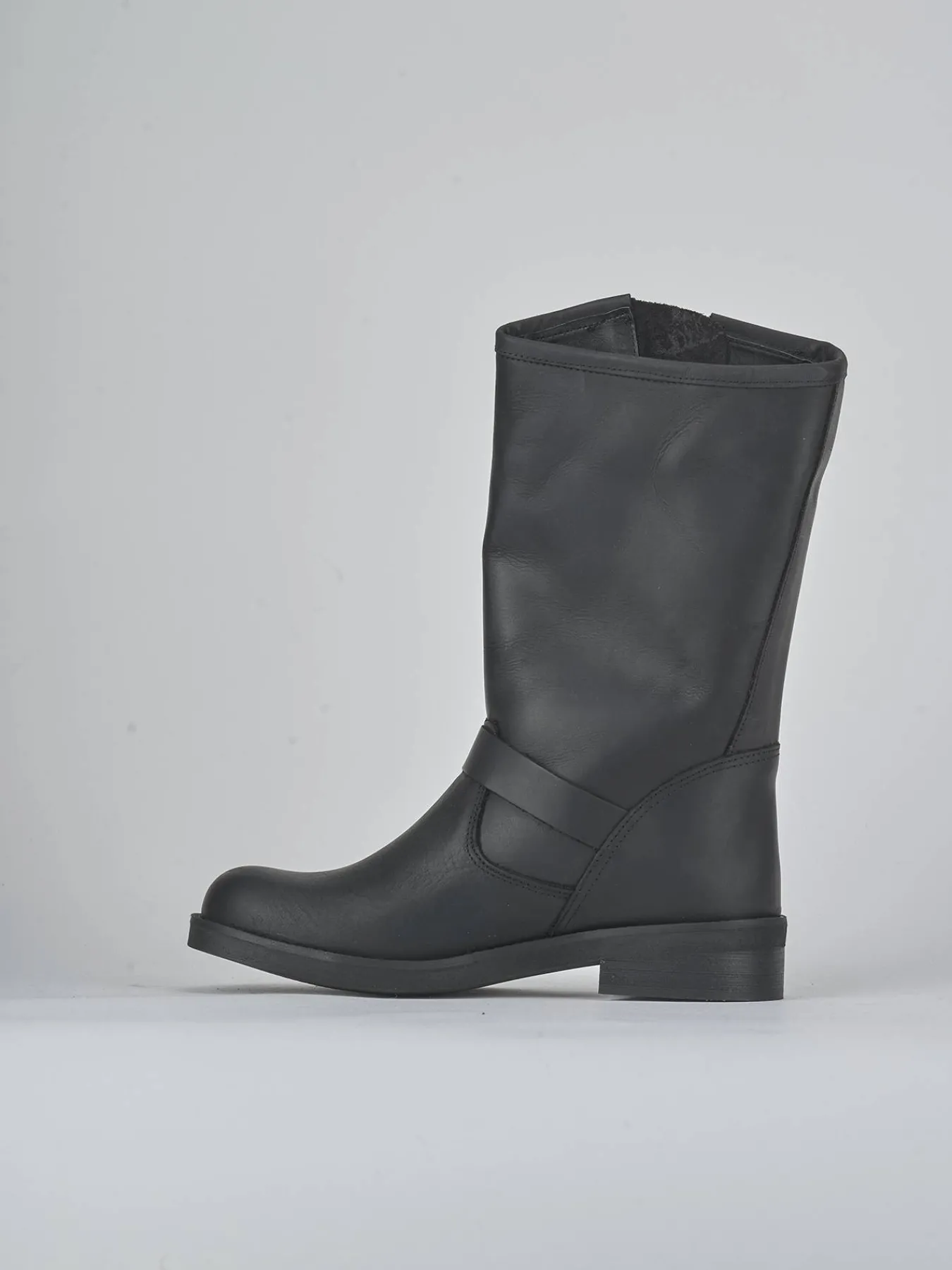 Il gambale ampio, che raggiunge i 3/4 dell’altezza del polpaccio, è arricchito da cuciture distintive e una doppia fibbia che aggiunge un tocco di stile moderno.