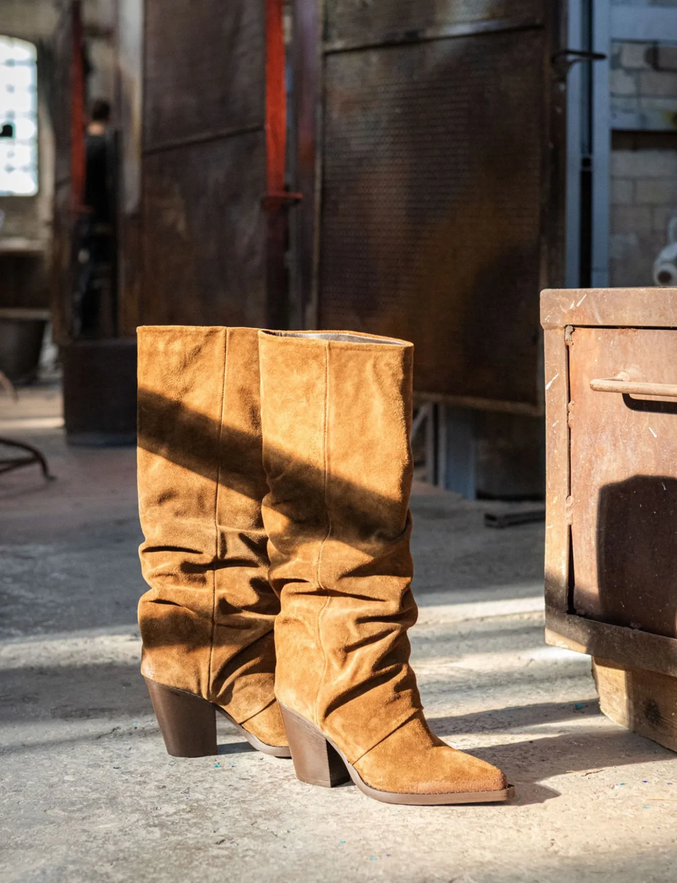 La tomaia in morbido camoscio avvolge la gamba con eleganza, mentre la punta sfilata e le cuciture sul gambale aggiungono un dettaglio sofisticato.
