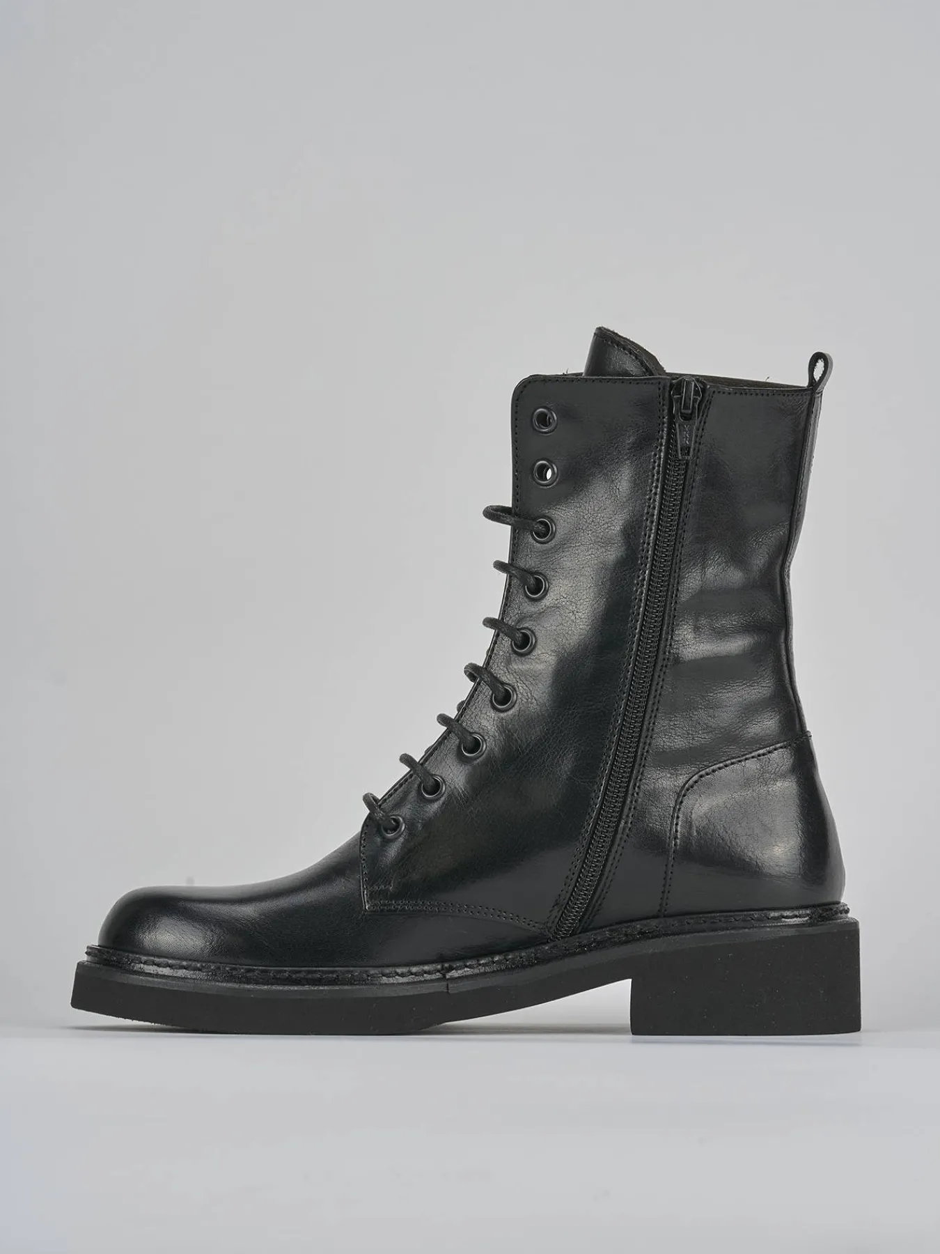 Pensato per la donna moderna, questo stivale unisce stile e praticità con una comoda cerniera anteriore, permettendo di indossarlo facilmente anche senza allacciare i lacci.