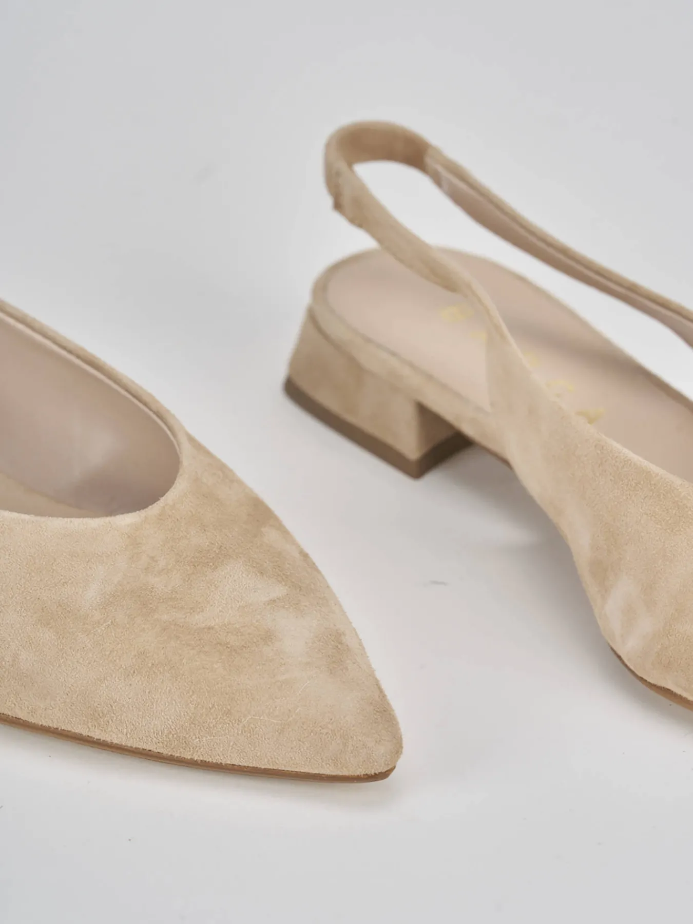 La tomaia in morbido camoscio avvolge il piede con delicatezza, mentre la punta sfilata aggiunge un tocco di raffinatezza.