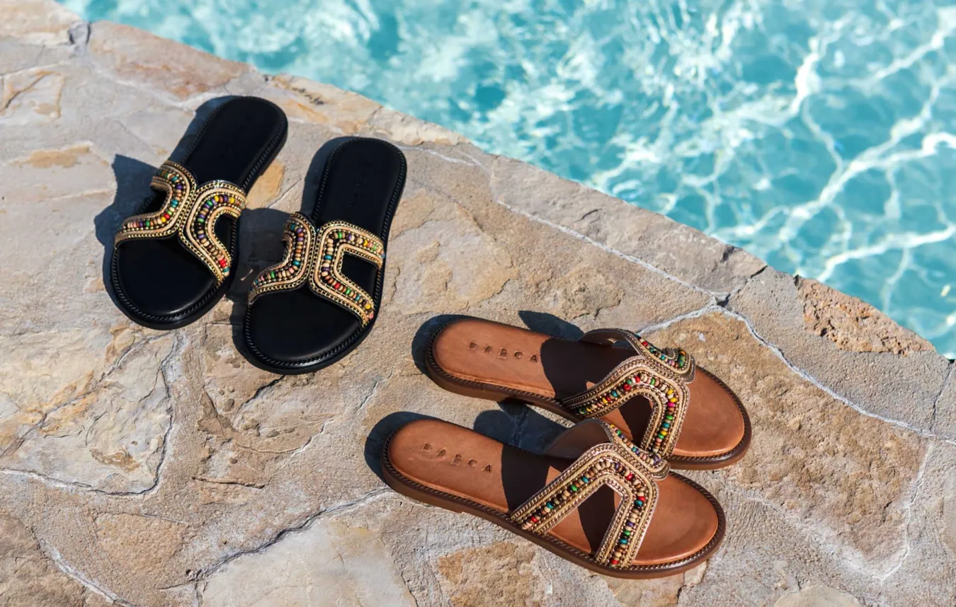 La tomaia è impreziosita da una fascia unica decorata con pietre colorate, aggiungendo un tocco di eleganza easychic al tuo outfit quotidiano.